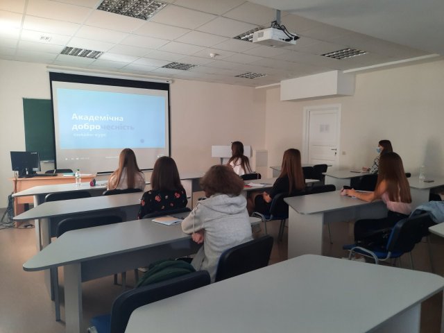 Впродовж першого місяця навчання в стінах нашого Університету під час вивчення дисципліни «Я - студент» студенти першого курсу спеціальностей «Міжнародні відносини, суспільні комунікації та регіональні студії», «Міжнародне право» та «Право» були ознайомлені з етичними принципами та нормами, які стосуються академічної доброчесності.
