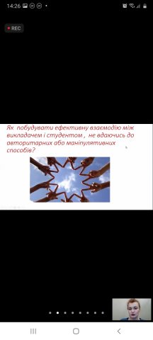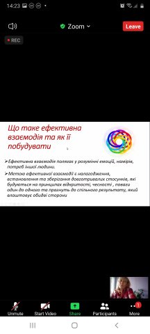 Тренер продемонструвала можливості використання прийомів та технік розвитку ефективної комунікації викладача зі студентом, розкрила зміст поняття ефективної взаємодії з іншими людьми, проаналізувала можливі психологічні бар’єри у спілкуванні та способи їх подолання, розповіла про маніпуляцію як форму неефективної взаємодії, допомогла засвоїти ефективні методи протистояння маніпулятивному впливу, а також показала як застосовувати на практиці техніки, які сприяють досягненню ефективності у спілкуванні.