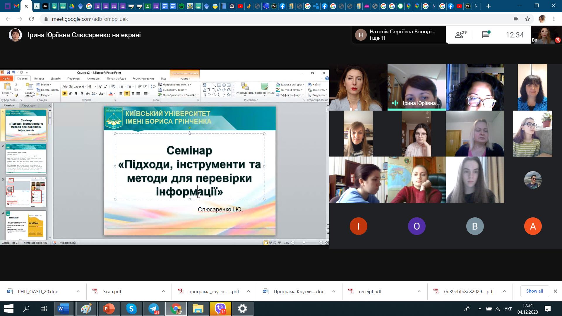4 грудня 2020 року студенти освітніх програм «Суспільні комунікації», «Регіональні студії» та «Міжнародне право» мали можливість поглибити свої знання у галузі інформаційно-комунікаційних технологій на семінарі, присвяченому підходам, інструментам та методам перевірки інформації.