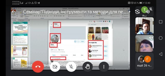 Під час семінару учасники з’ясували як за допомогою конкретних інструментів виявити кількість підписників та переглядів відео; кількість тролів, ботів конкретного акаунта в Tweeter; відстежити взаємодію між акаунтами; дізнатися про особливості deep fake та навчитися їх розпізнавати. Також обговорювалися сюжети, пов’язані з міжнародною інформацією.