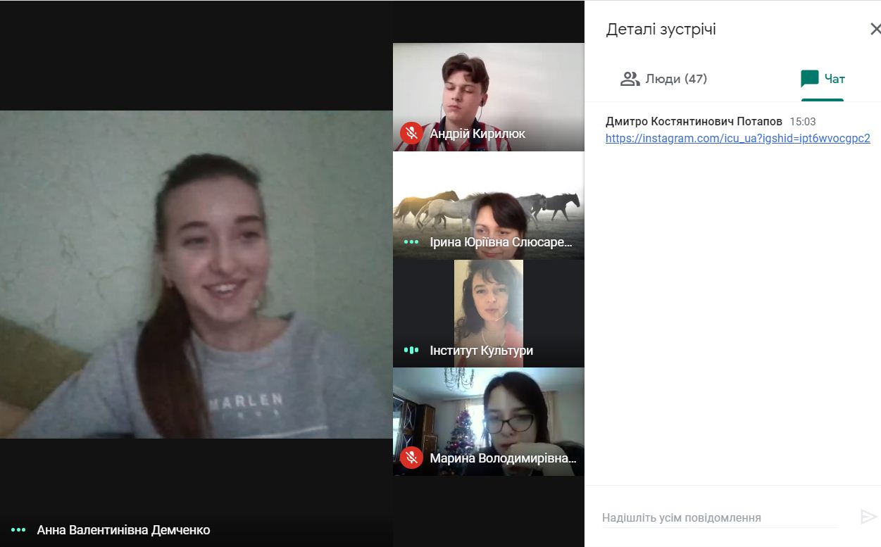 Спікерка також розповіла про перспективи працевлаштування студентів-міжнародників і підкреслила, що вже сьогодні студенти спеціальностей «Міжнародні відносини, суспільні комунікації та регіональні студії» та «Право» ФПМВ, беруть участь у практичній реалізації низки проєктів Інституту культури України. Спікерка подякувала факультету за високий рівень підготовки, що на практиці демонструють наші студенти, які активно працюють з пані Мариною над новими ініціативами.