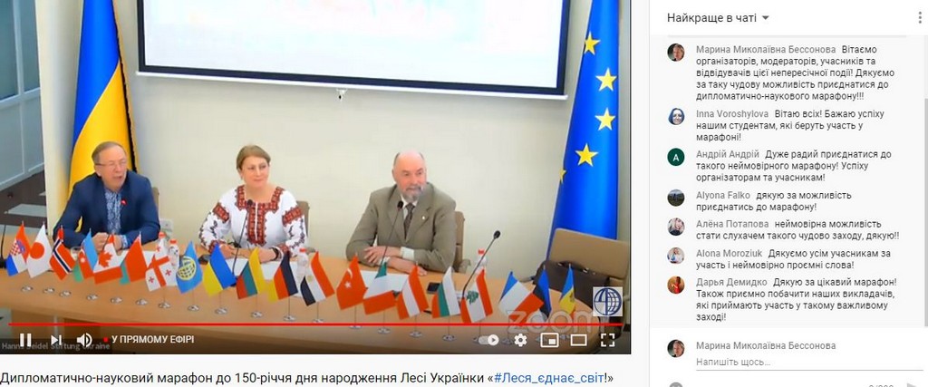 Творчість великої української поетеси мовами різних народів світу допомогли проілюструвати студентки 2-го курсу кафедри міжнародного права та міжнародних відносин, які навчаються на освітній програмі "Суспільні комунікації". Так, іспанською мовою славнозвісний "Contra spem spero" прочитала Катерина Давиденко, корейською – Наталія Базарна. Руслана Клюй ознайомила відвідувачів дипломатично-наукового марафону із творчістю видатної поетеси турецькою мовою, прочитавши вірш "Надія/Ümit".
