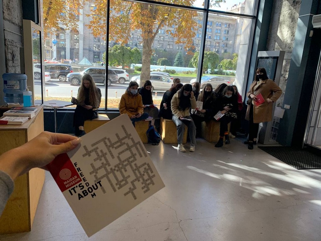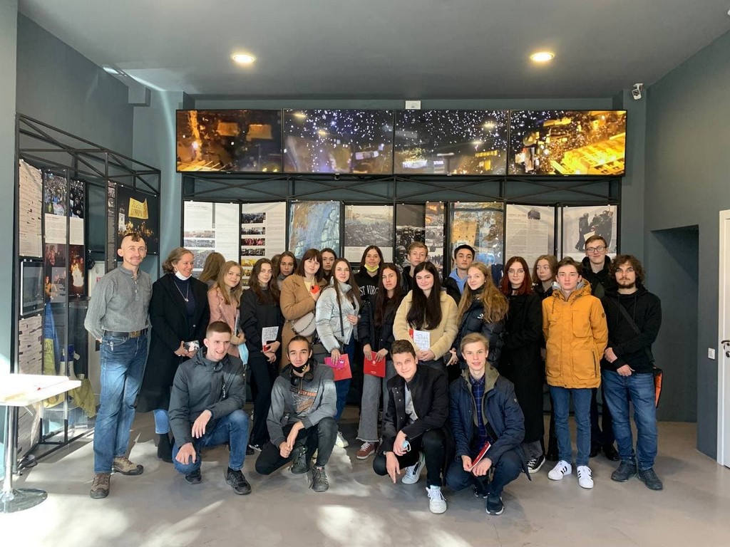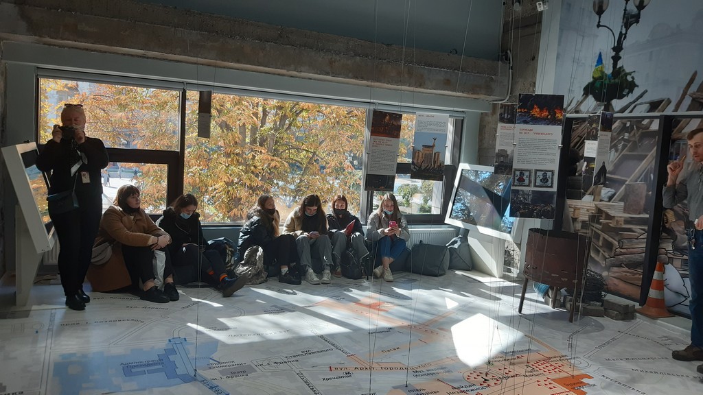 Студенти та викладачі побували безпосередньо у місцях ключових подій: на Майдані Незалежності, алеї Героїв Небесної Сотні, вулиці Інститутський. Крім експозиції, відвідувачів ознайомили з основними напрямами діяльності Інформаційно-виставкового центру Музею Майдану; вимірами міжнародної співпраці; започаткованою традицією вшанування Героїв Небесної Сотні Дзвоном Гідності. 70-кілограмовий дзвін установлено на території майбутнього Меморіалу Героїв Небесної Сотні поруч із каплицею архистратига Михаїла та українських новомучеників. Як і дерев'яні хрест та каплиця на місці розстрілів, дзвін поруч зі стелою з портретами загиблих протестувальників знаменує подвиг героїв і звитягу українського народу. Дзвін Гідності освячено й відкрито 1 грудня 2020 року. Це особливий для української історії день. 1 грудня 1991 року 90% українців на референдумі в тодішній УРСР підтримали Акт проголошення незалежності України. А 2013 року саме 1 грудня, за оцінками істориків і публіцистів, Євромайдан переріс у Революцію Гідності. Цього дня до центру Києва прийшли від 500 тисяч до мільйона осіб – і вони вже вимагали не лише євроінтеграції, а й покарання за побитих і розігнаних уночі мітингарів.