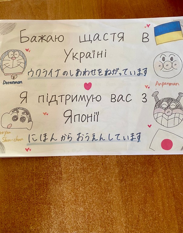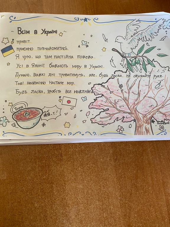 Крім того, було проведено онлайн зустріч, де студенти Університету Грінченка мали змогу безпосередньо поспілкуватись з японськими студентами. На завершення зустрічі українські студенти написали свої листи та намалювали малюнки, в яких вони намагались зобразити теперішні події в Україні. Ці листи і малюнки Наоя передасть студентам японських університетів.
