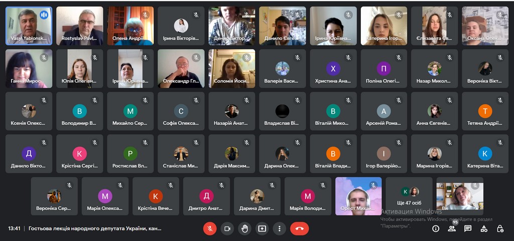 18 жовтня 2022 року відбулася гостьова онлайн-зустріч викладачів та здобувачів освітніх програм «Суспільні комунікації», «Регіональні студії» другого (магістерського) рівня й освітніх програм «Суспільні комунікації», «Регіональні студії» та «Міжнародне право» першого (бакалаврського) рівня з народним депутатом України, кандидатом політичних наук, доцентом Ростиславом Павленком. Головна мета зустрічі – формування знань здобувачів щодо ролі релігійного чинника у розвитку політики держави та особливостей релігійної дипломатії.