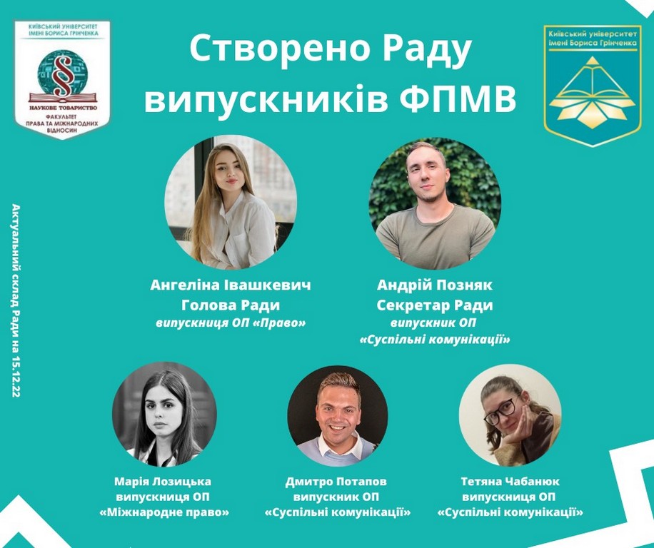 Івашкевич Ангеліну Анатоліївну було обрано Головою Ради випускників;
