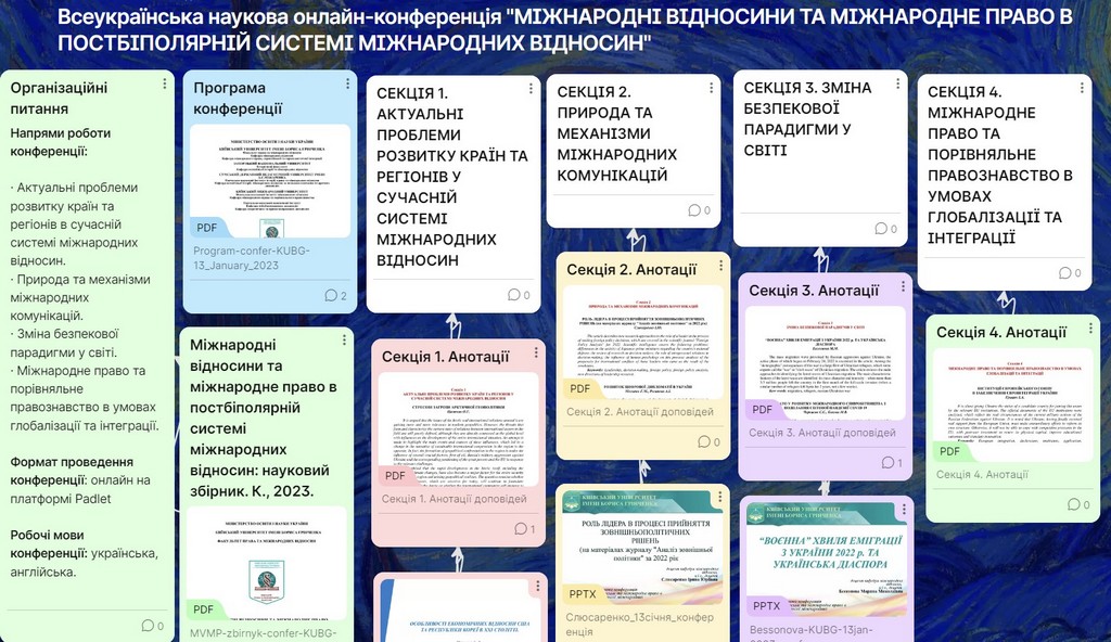 У період з 13 по 23 січня 2023 р. тривала робота Всеукраїнської наукової онлайн-конференції "МІЖНАРОДНІ ВІДНОСИНИ ТА МІЖНАРОДНЕ ПРАВО В ПОСТБІПОЛЯРНІЙ СИСТЕМІ МІЖНАРОДНИХ ВІДНОСИН".
