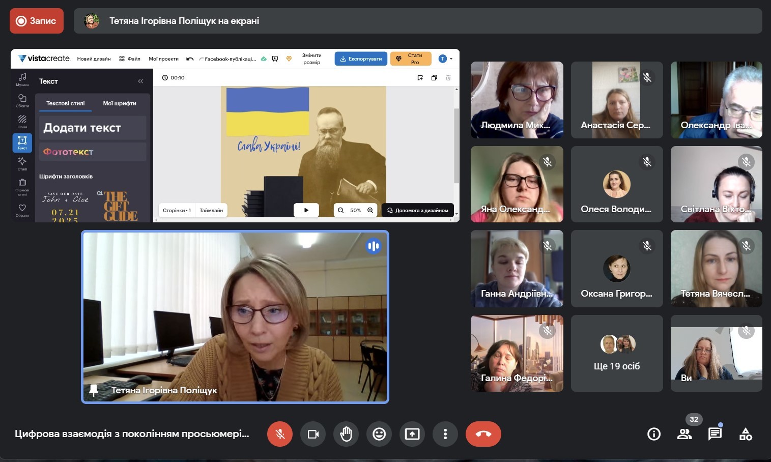 В ході вебінару куратори академічних груп змогли попрактикуватися у деяких практиках створення та використання медіаконтенту за допомогою онлайн сервісів. Від кафедри міжнаролних відносин вебінар відвідала та скористалася можливостями професійного зростання куратор 2 курсу та гарант бакалаврської ОП “Регіональні студії” Бессонова Марина Миколаївна, яка упродовж вебінару засвоїла практичні навички створення цифрового контенту, який можна використати при викладанні дисципліни “Теорія міжнародних відносин”. Наприкінці вебінару можна було залишити фідбек через заповнення відповідної анкети.