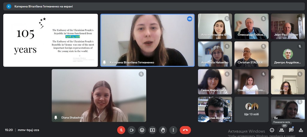 Під час англомовної зустрічі, головна тема якої була «Українська молодь: сила, здобута під час війни», українські студенти ознайомили австрійських колег з інформацією про Україну, її культуру, ідентичність та суспільні трансформації. За допомогою презентацій та у форматі живого діалогу студенти розповіли про нашу країну, її ідентичність та культуру, показали українську молодь як рушійну силу змін. Особисті історії прекрасно розкрили тему консолідації українського суспільства та молоді. Адже вже понад рік українська молодь активно займається волонтерством, робить свій внесок у культурне та соціальне життя країни і її оборону. Модератором та натхненницею зустрічі стала здобувачка 4-го року навчання ОПП “Суспільні комунікації” першого (бакалаврського) рівня Діана Шалашна.