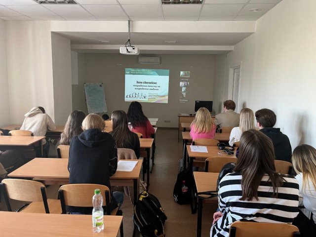 Ганна Мирославівна наголосила на важливості дотримання правил академічної доброчесності при написанні студентами курсових робіт. Вона ознайомила їх з особливостями оформлення наукових текстів, а також звернула увагу на те, що остаточні тексти наукових досліджень необхідно перевірити на виявлення збігів тексту у системі Strike Plagiarism, який безкоштовно забезпечено на базі Біблотеки Університету.