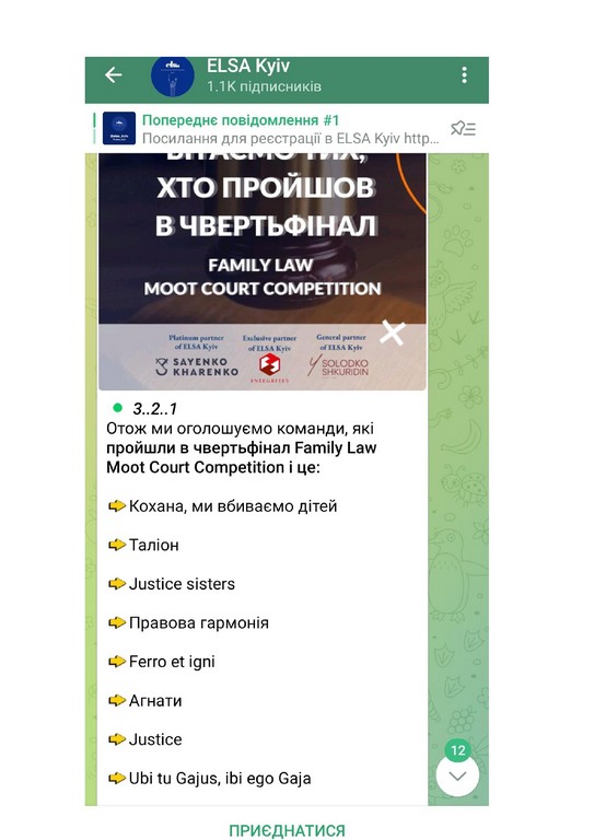 Член команди – Мартинюк Мілєн виборов перемогу в номінації «Найкращий оратор» у Family Law Moot Court Competition.