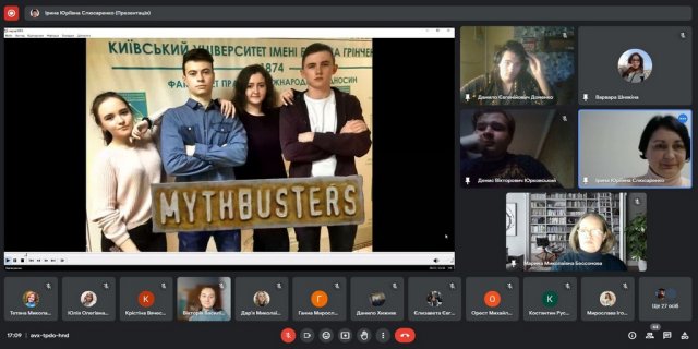 Ірина СЛЮСАРЕНКО презентувала науковий проєкт 2019 року від команди Факультету права та міжнародних відносин (Ангеліна ІВАШКЕВИЧ, Ярослав ШТОМПЕЛЬ, Вікторія КОРЖЕНІВСЬКА) «Академічна доброчесність: руйнівники легенд», який посів І місце за напрямом «Наука та освіта: утвердження академічної доброчесності» в Конкурсі наукових проєктів Всеукраїнської науково-практичної онлайн-конференції «Дослідження молодих вчених: від ідеї до реалізації» та запросила студентів до участі в даному конкурсі 2024 року.