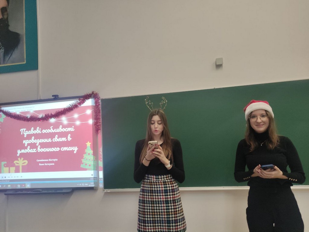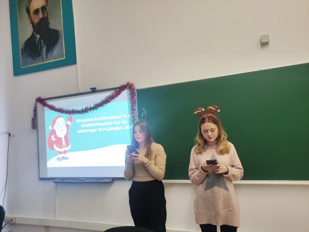 ✓ «Юридична відповідальність за правопорушення під час новорічних та різдвяних свят» (студентки групи Прб-2-23-4.0д Янюк Катерина та Самойленко Вікторія)