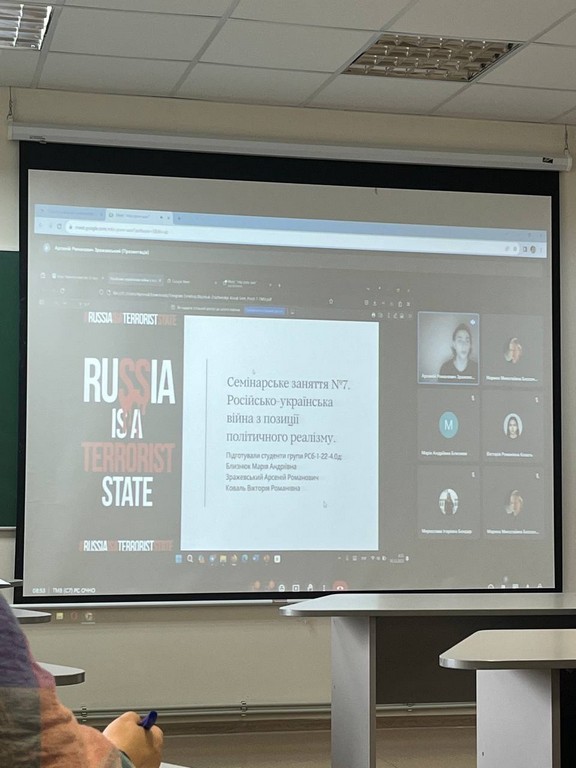 У рамках дисципліни «Теорія міжнародних відносин» здобувачі аналізували конкретну ситуацію, що має місце у сучасних міжнародних відносинах. Цього року в рамках case-study розглядали російсько-українську війну: здобувачі поділилися на 5 груп, які аналізували причини, хід та можливе завершення війни з позицій різних теоретичних концепцій, з якими ознайомилися на попередніх заняттях. У змішаному форматі (очно в аудиторіях та із залученням здобувачів, які працювали та доєдналися дистанційно) російсько-українська війна була проаналізована з позицій представників політичного реалізму, політичного лібералізму, марксизму, ціивлізаційного та геополітичного підходів. У форматі дискусії були обговорені слабкі та сильні сторони кожної із концепцій, яка застосовувалася для розгляду російсько-української війни. В обох групах учасники case-study дійшли висновку що найкращий аналіз цього міжнародного конфлікту можна здійснити з позицій політичного реалізму та з використанням геополітичного підходу.