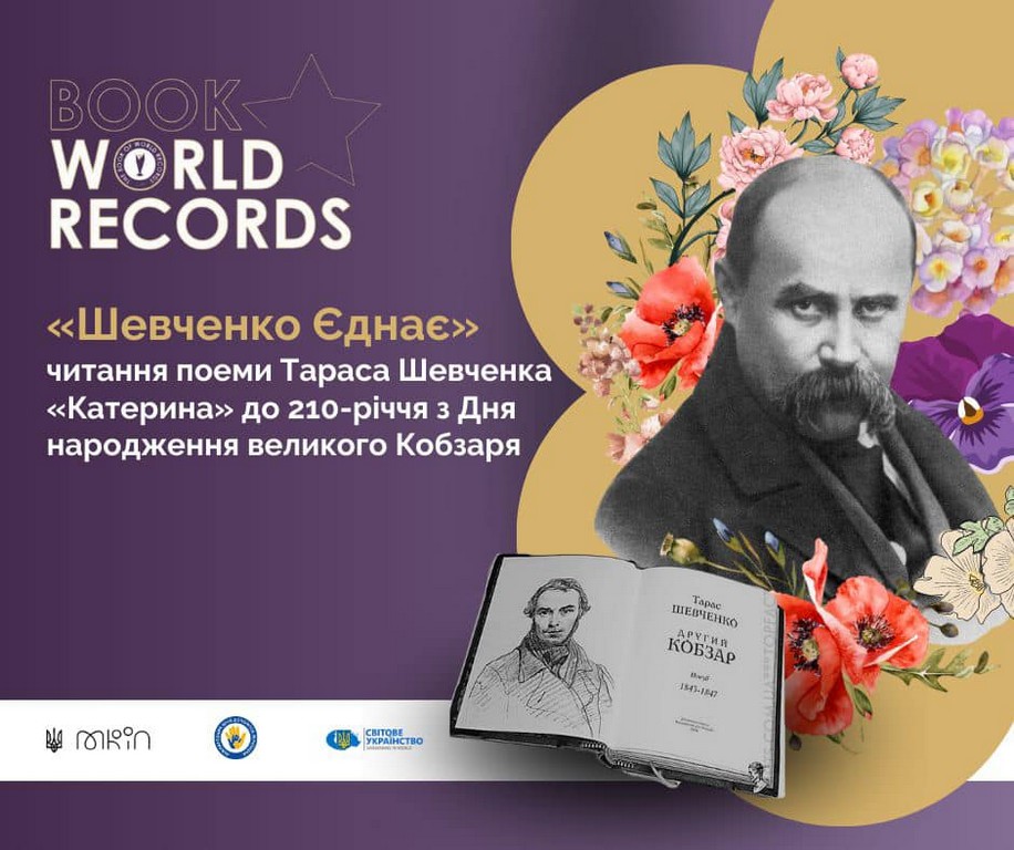 11 березня у Міністерстві культури та інформаційної політики відбулася церемонія фіксації рекорду України за наймасовіше читання поеми «Катерина» Тараса Шевченка, українцями та іноземцями, в рамках ініціативи «Шевченко єднає». З нагоди 210-річчя народження Кобзаря 210 учасників з 22 країн світу декламували рядки з твору Тараса Шевченка.