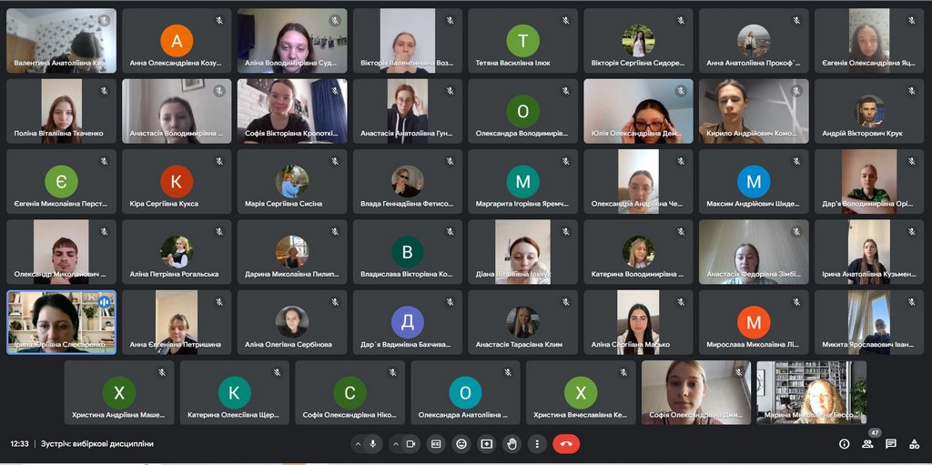 Для роз’яснення процедур вибору дисциплін з каталогу вибіркових дисциплін 10 квітня 2024 року відбулася зустріч здобувачів першого року навчання освітніх програм “Суспільні комунікації” та “Регіональні студії”, гарантів освітніх програм Ірини Слюсаренко та Марини Бессонової та кураторів груп першого курсу Мирослави Лісовської та Тетяни Ілюк.