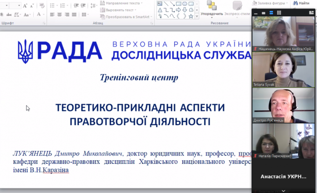 Під час навчання були розглянуті актуальні теми правотворчої діяльності, зокрема: теоретично-прикладні аспекти правотворчої діяльності; підготовка проєкту нормативно-правового акту; особливості дії нормативно-правого акту; проблеми правового моніторингу тощо.