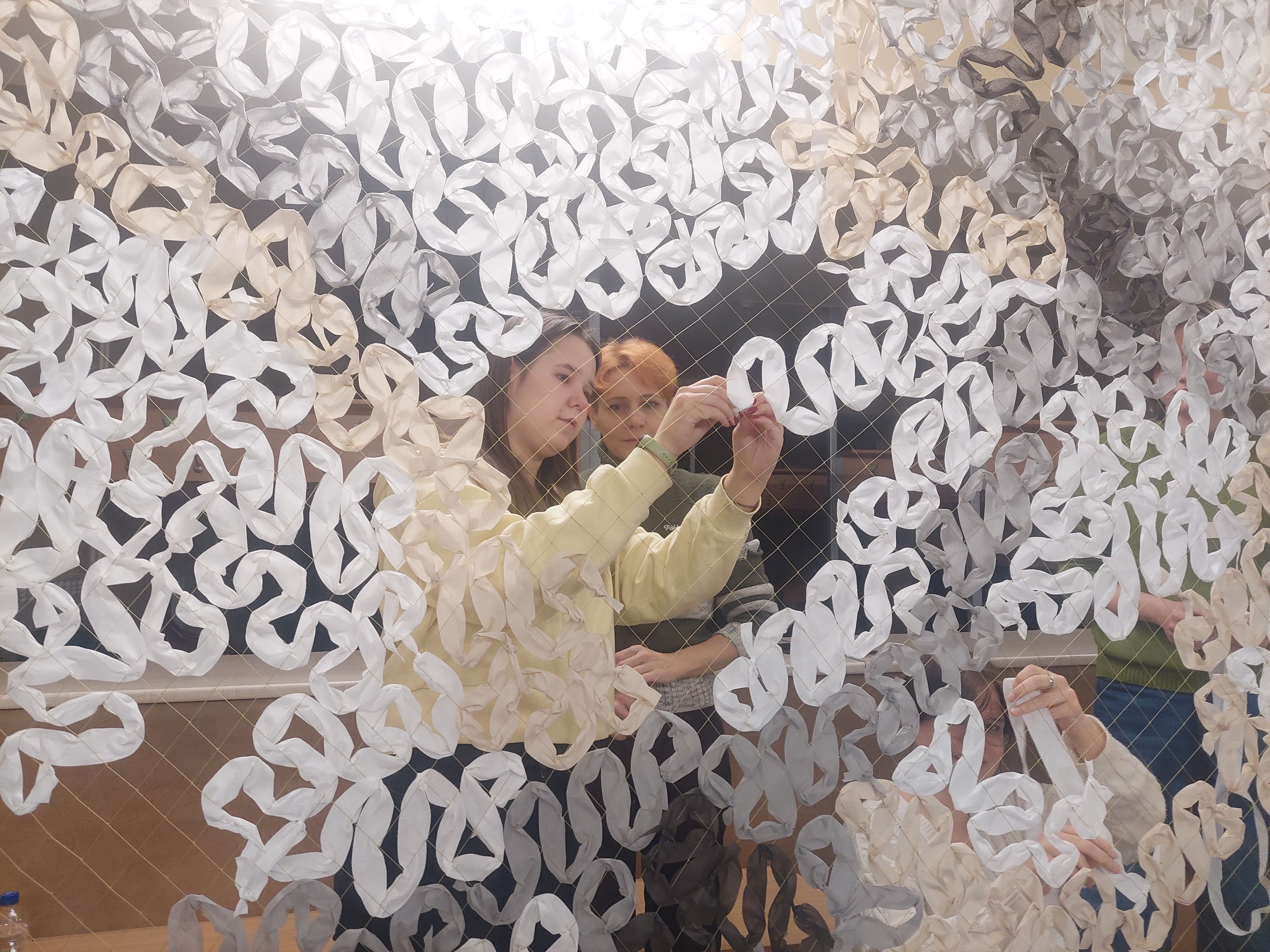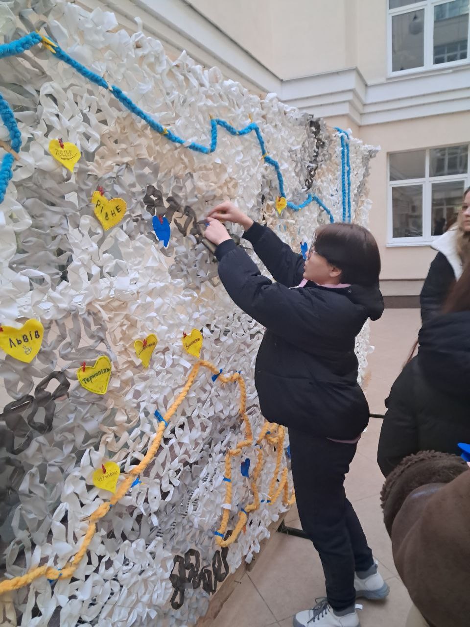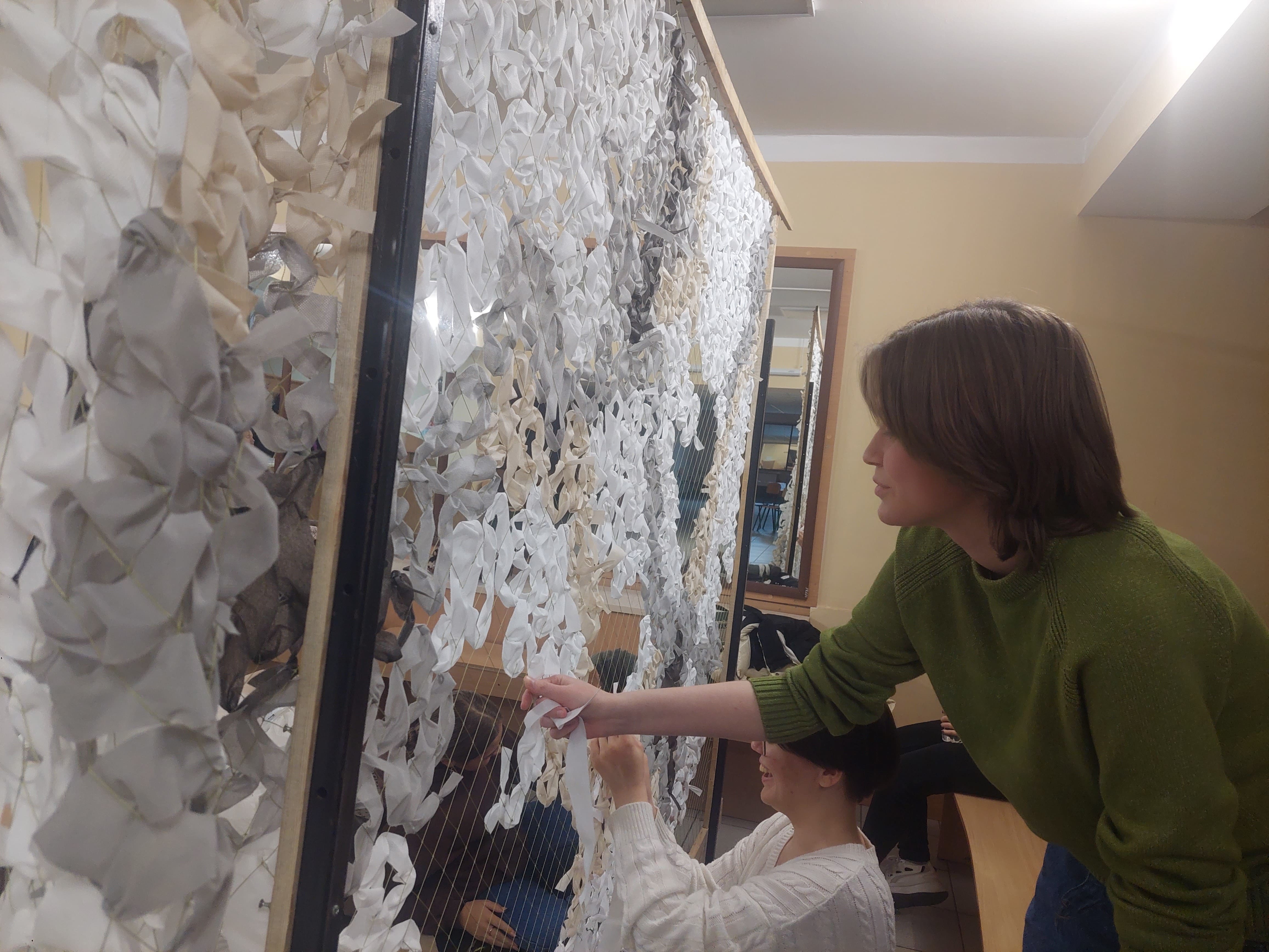 Цьогорічний проєкт ми присвячуємо захисту тих, хто оберігає нас і бореться за кожен метр рідної української землі – нашим Героям. Мрії про Перемогу і мирну Україну студенти демонструють через експозицію «Місця щасливих людей: захист для Героїв!» – велику захисну сітку, яку сплели під наставництвом методиста Студентського офісу №1, представниці Благодійного фонду «Волонтери ЛАД» Юлії Поліщук.