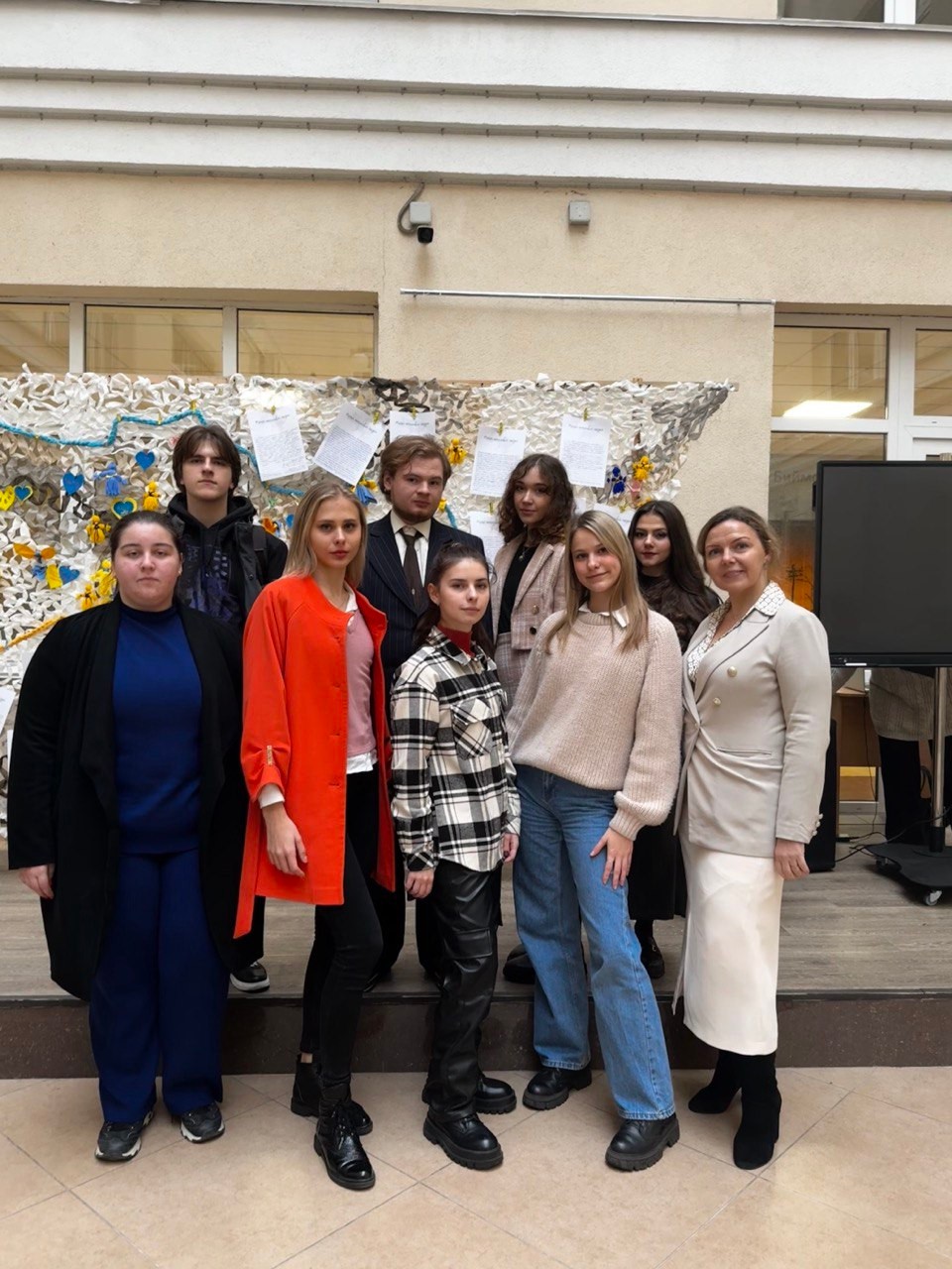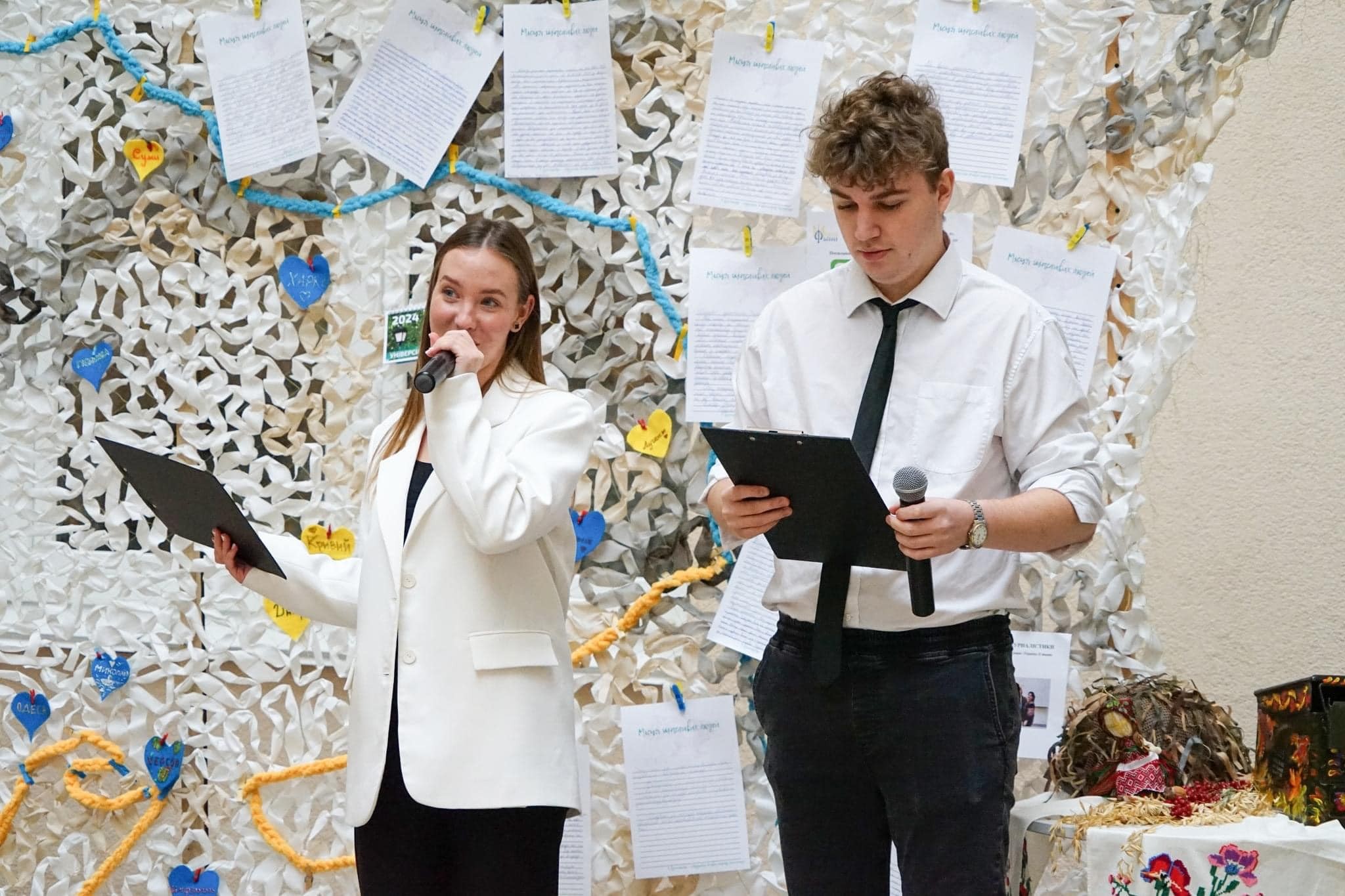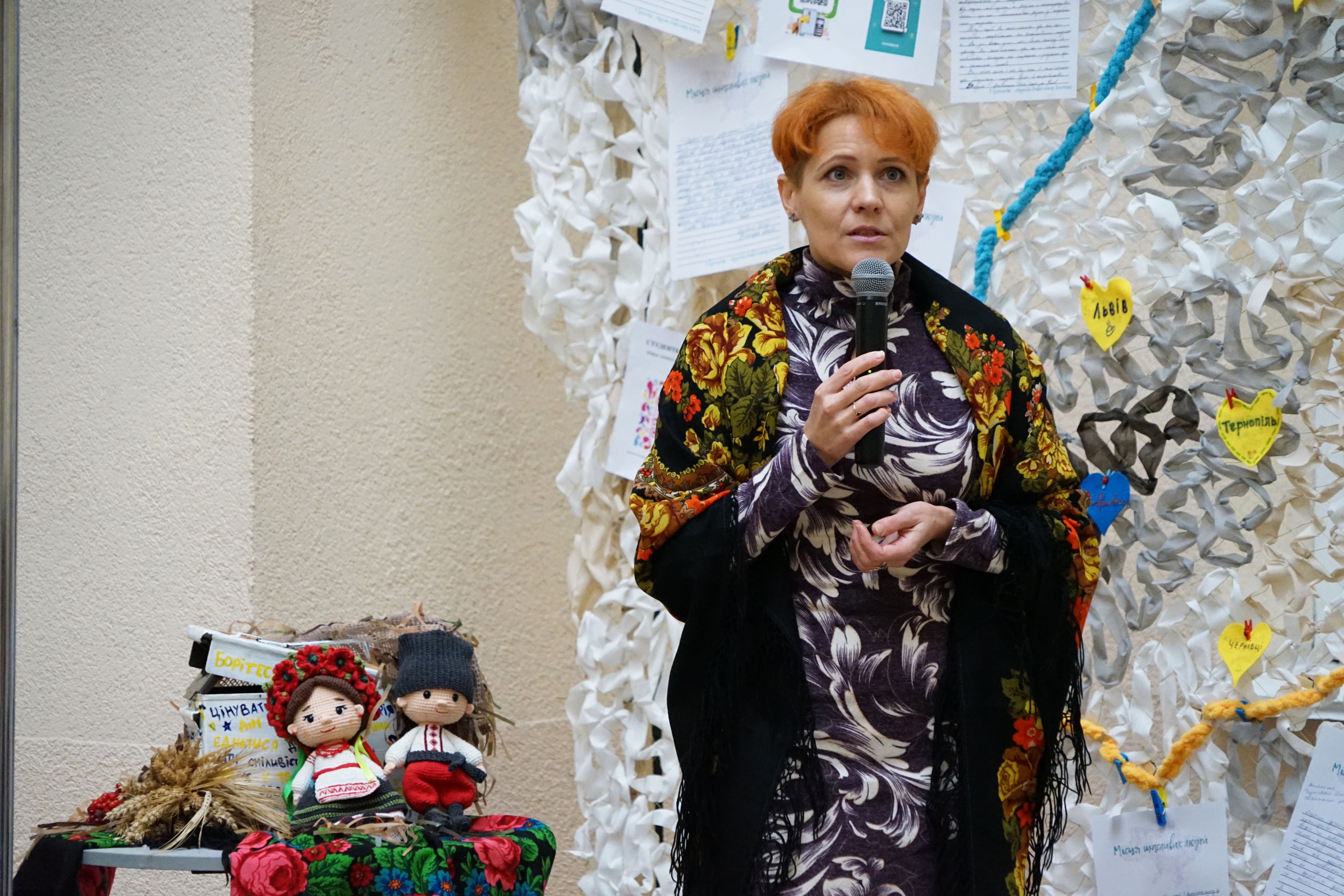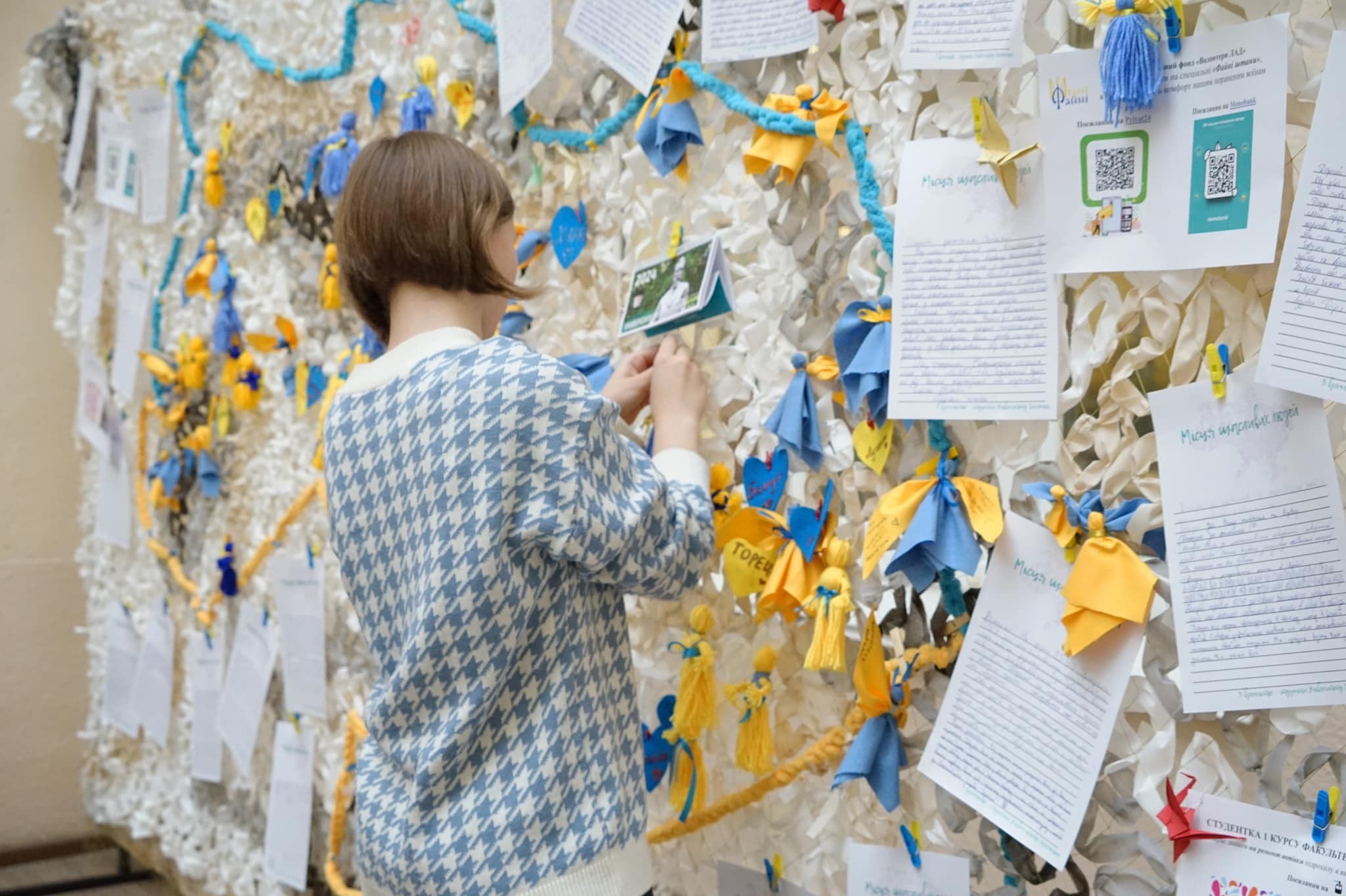 Цьогорічний проєкт ми присвячуємо захисту тих, хто оберігає нас і бореться за кожен метр рідної української землі – нашим Героям. Мрії про Перемогу і мирну Україну студенти демонструють через експозицію «Місця щасливих людей: захист для Героїв!» – велику захисну сітку, яку сплели під наставництвом методиста Студентського офісу №1, представниці Благодійного фонду «Волонтери ЛАД» Юлії Поліщук.