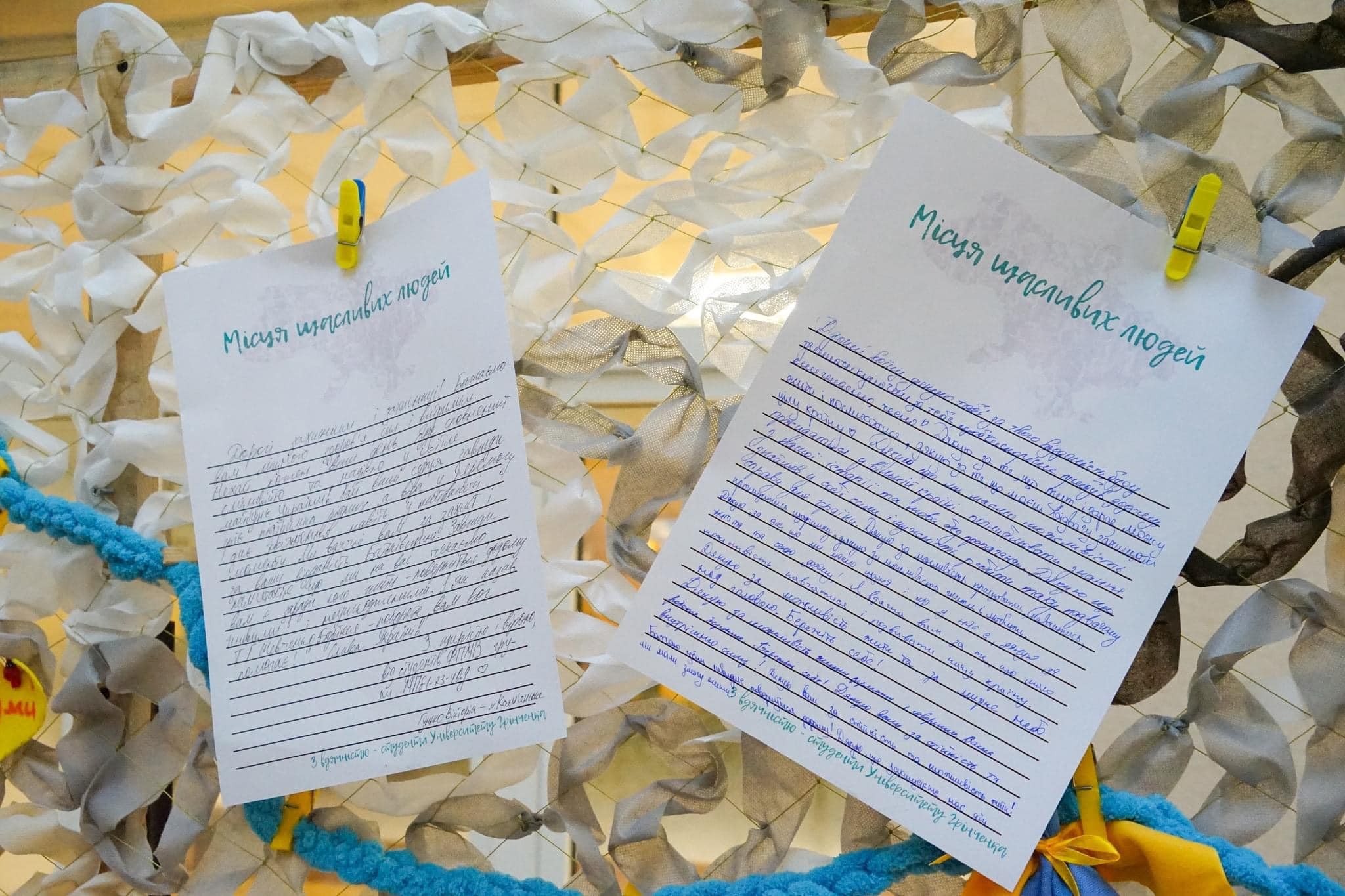 Власноруч написані студентами листи та обереги «Серце українських міст», із вдячністю та побажаннями скорішого повернення додому передають емоційний стан молоді, прагнення до Перемоги та незламність.