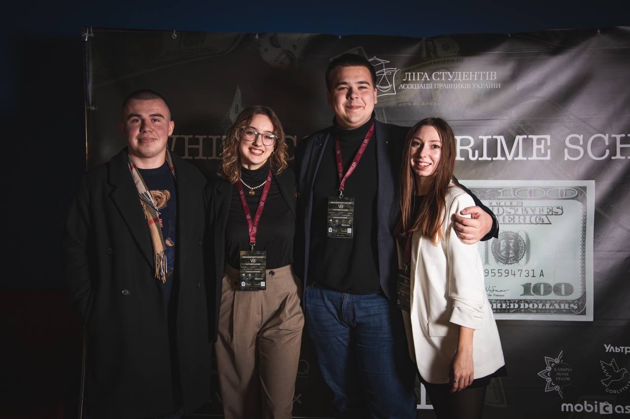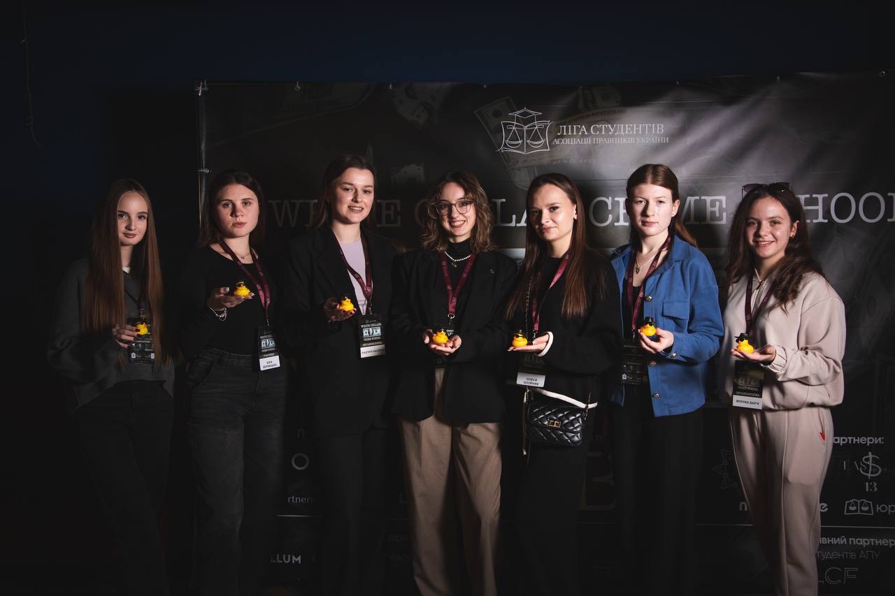 30 листопада та 1 грудня 2024 року студенти 1 курсу (Вербицька Кіра та Коростіль Олександра), 2 курсу (Касяненко Ілона, Олійник Олеся, Радчук Валерія, Жорова Дар‘я), 3 курсу (Мондрієвська Анастасія) та 4 курсу (Мудрик Яна та староста академічної групи Пасинчук Микола) спеціальності «Міжнародне право» мали змогу взяти участь в дводенному заході White collar crime school, організованому Київським осередком Ліги студентів АПУ.