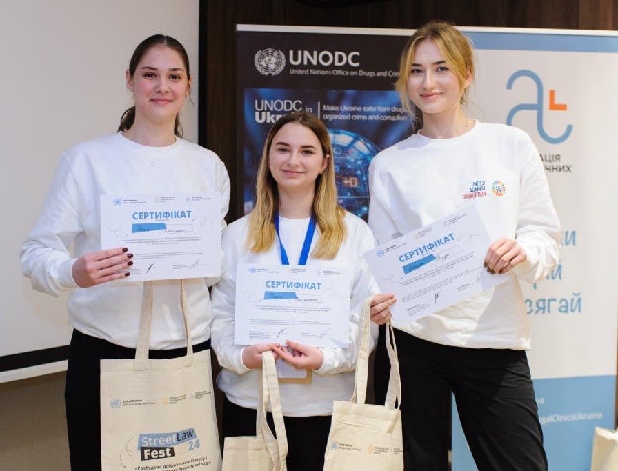 Студенти другого курсу спеціальності «Право» Факультету права та міжнародних відносин Київського столичного університету імені Бориса Грінченка - Олена Остапенко, Марія Клименко, Марія Богун (яка по сумісництву є також лаборантом кафедри приватного права) стали фіналістами конкурсу StreetLaw Fest 2024, темою якого було «Розбудова доброчесного бізнесу і влади через правову просвіту молоді».
