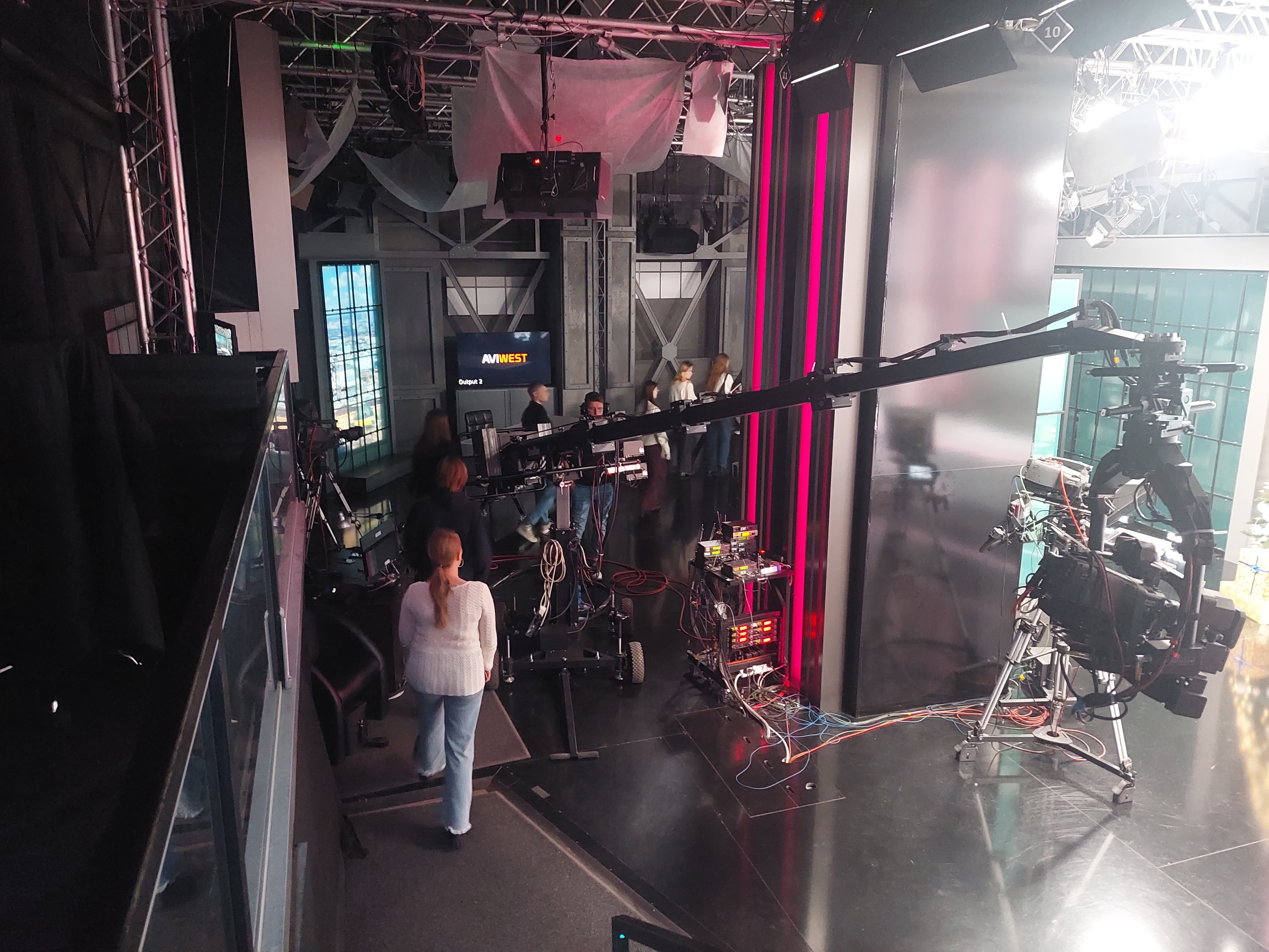 З величезним інтересом студенти відвідали студію телеканалу під час трансляції прямого ефіру, де змогли наочно спостерігати за роботою телеведучої, та костюмерні каналу, де Ірина ГЛАВАЦЬКА показала студентам вбрання для ефірів та коротко розповіла про правила добору костюмів для роботи в кадрі.