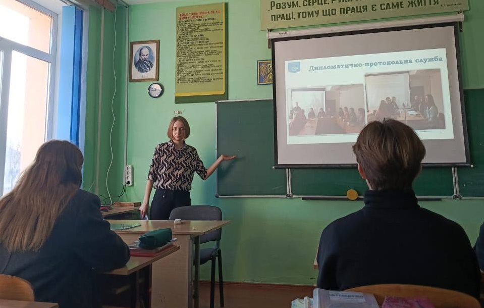 10 лютого 2025 року здобувачка першого року навчання освітньої програми «Регіональні студії» факультету права та міжнародних відносин Дарина Дяченко відвідала Попільнянський ліцей та провела профорієнтаційний захід для одинадцятикласників. У ході виступу розповіла про спеціальність «Міжнародні відносини», наголосивши на перевагах здобуття освіти у цій галузі саме в Київському столичному університету імені Бориса Грінченка. Окреслила перспективи подальшого працевлаштування, можливість академічної мобільності та участі в активній діяльності студентських спільнот. Дарина поділилася особистим досвідом навчання в університеті, особливостями підготовки та вступу до нього, відповіла на запитання учнів та запросила їх приєднатися до студентської спільноти Університету.