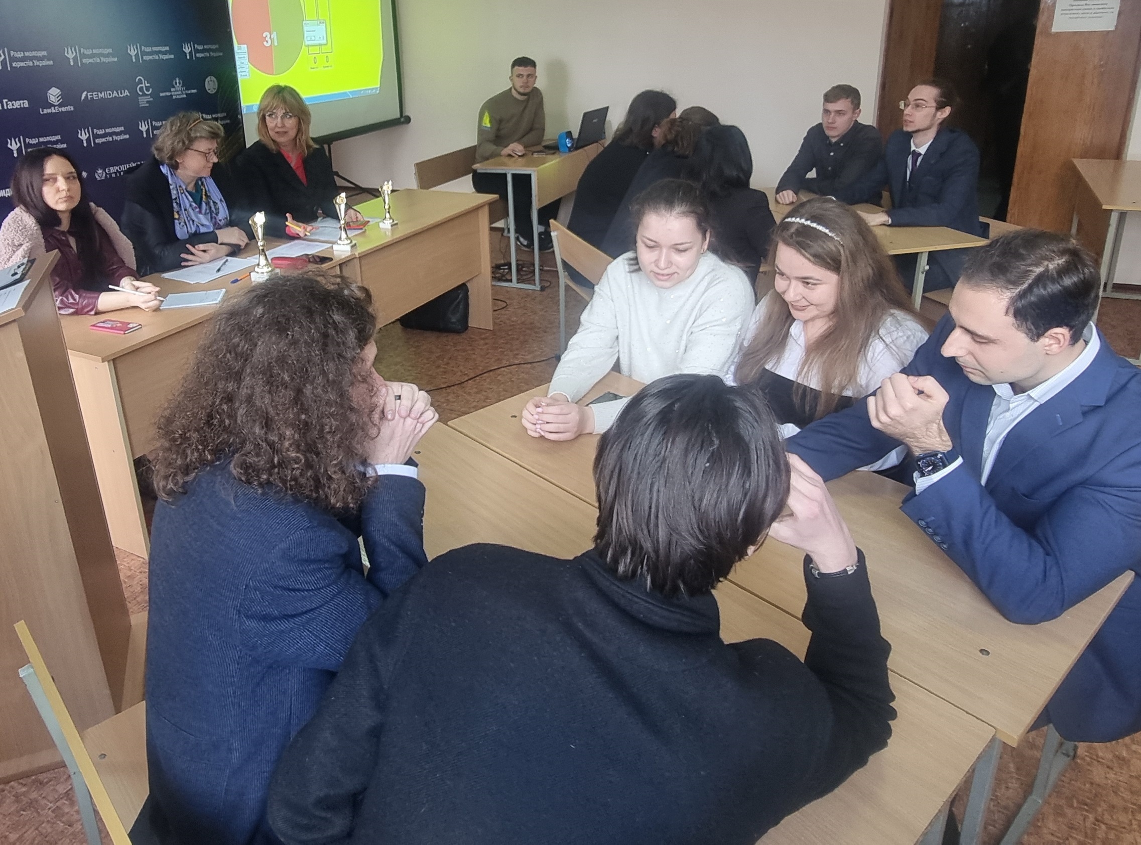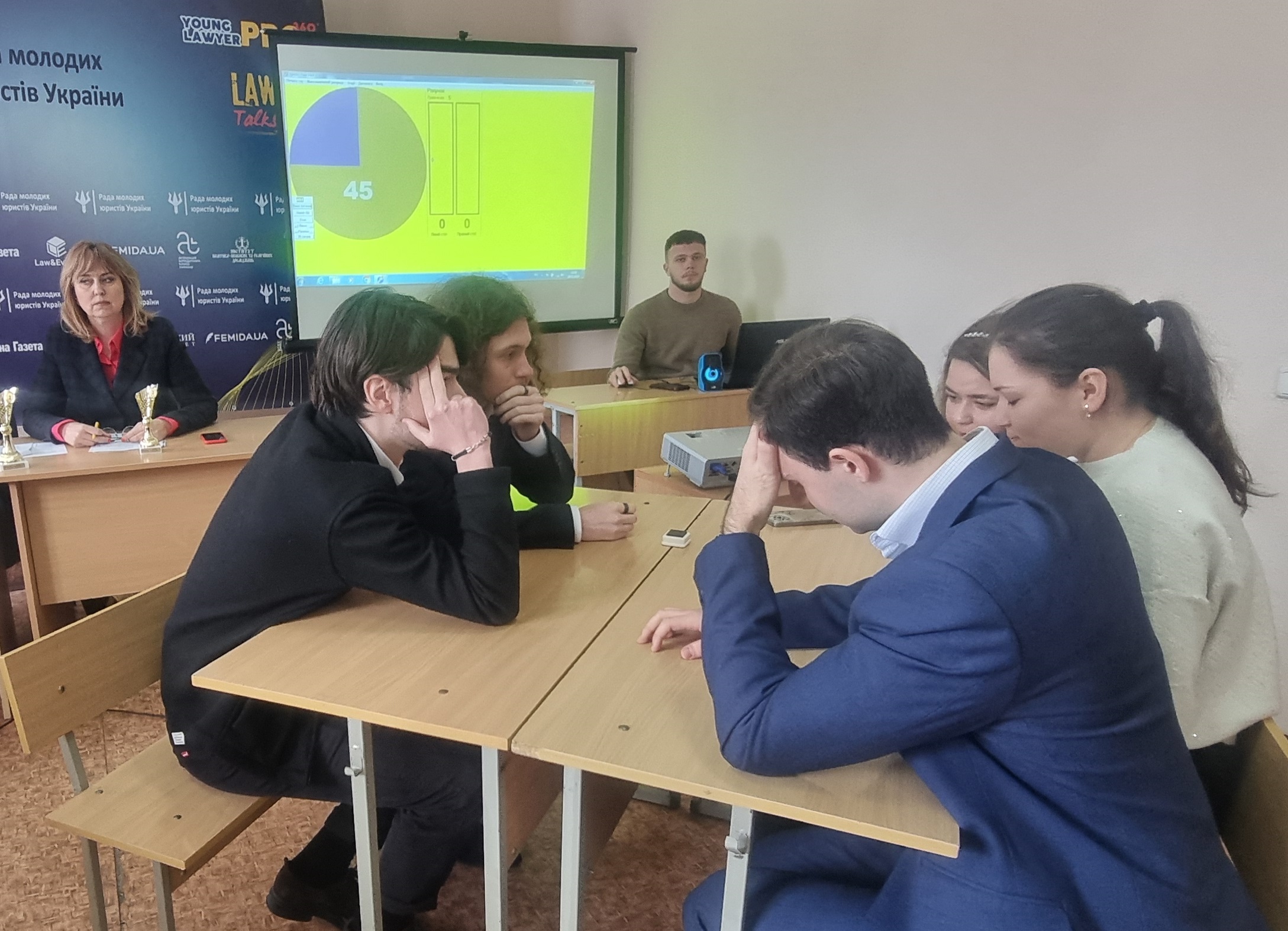 Із вступним словом до учасників заходу звернулися: Олег ТКАЧУК, вчений секретар Науково-консультативної ради при Верховному Суді України. Звернув увагу всіх присутніх на тому, що наукова та студентська спільнота разом з практикуючими правозахисними та громадськими організаціями роблять велику справу у підготовці та вихованні майбутніх кваліфікованих правників. В умовах воєнного стану перед державною та правовою системою постали нові виклики, зокрема інтеграція національного законодавства в європейський простір, сподіваюся що даний захід сприятиме глибшому розумінню євроінтеграційних процесів та гармонізації національного та міжнародного права; Євген КОТОРОБАЙ, голова Ради молодих юристів України, звертаючись до учасників заходу, повідомив, що відповідний правничий ВІП-турнір був започаткований ще у далекому 2008 році, командою Міністерства юстиції України, відтоді проведення заходів такого формату вже стало традиційним. Правничий ВІП-турнір є не тільки ареною для змагань студентів, а й місцем нових можливостей та корисних цікавих знайомств, де майбутні правники з різних куточків України можуть поспілкуватись між собою, поділитись своїми знаннями та досвідом, тим самим оцінити свій рівень кваліфікації; Тетяна ОГНЕВ`ЮК, голова правління правничої асоціації «Добросуд», адвокат, кандидат юридичних наук, викладач судової риторики, наголосила на тому, що такі заходи є корисними не тільки для студентської спільноти, а й для науковців та практикуючих юристів, оскільки зобов’язують нас знаходитись у так званому правовому тонусі; та інші організатори та гості заходу.