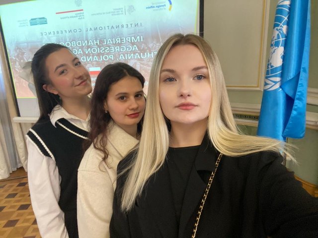 30 квітня 2025 року студентки 3-го курсу спеціальності «Міжнародне право» Катерина Резнік, Дарʼя Скочій та Карина Куриленко на запрошення наших колег відвідали міжнародну конференцію «Імперський посібник щодо агресії проти Литви, Польщі та України. Уроки політики Катерини ІІ і Володимира Путіна-агресора», яка відбулась у стінах Дипломатичної академії України імені Геннадія Удовенка при Міністерстві закордонних справ України з нагоди річниці Конституції Речі Посполитої від 3 травня 1791 року.