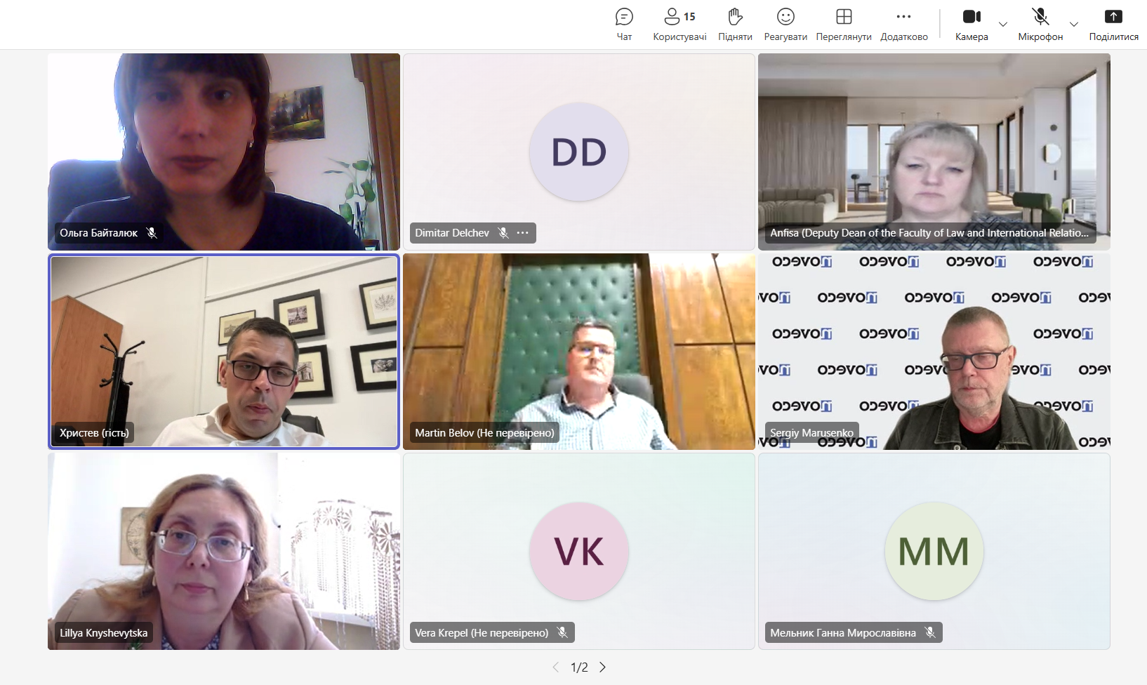On May 7, 2025, the first introductory online meeting took place between the Faculty of Law and International Relations and representatives of Sofia University "St. Kliment Ohridski" (Republic of Bulgaria). The event marked an important step in the development of international academic cooperation and strengthening the partnership between two leading educational institutions.