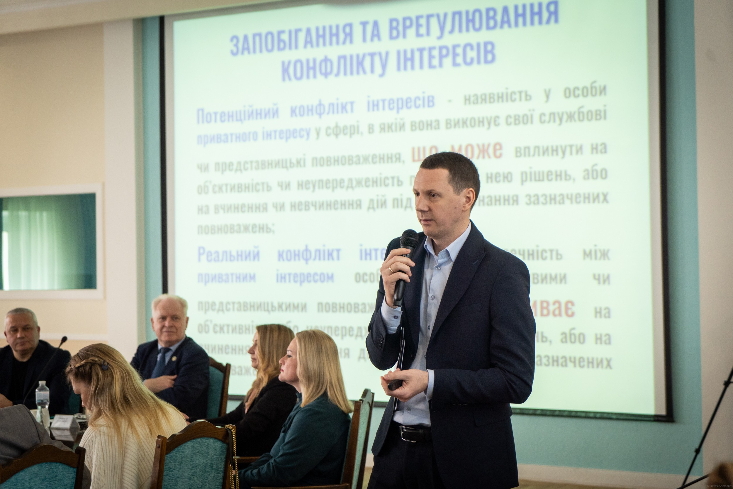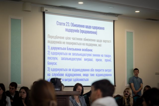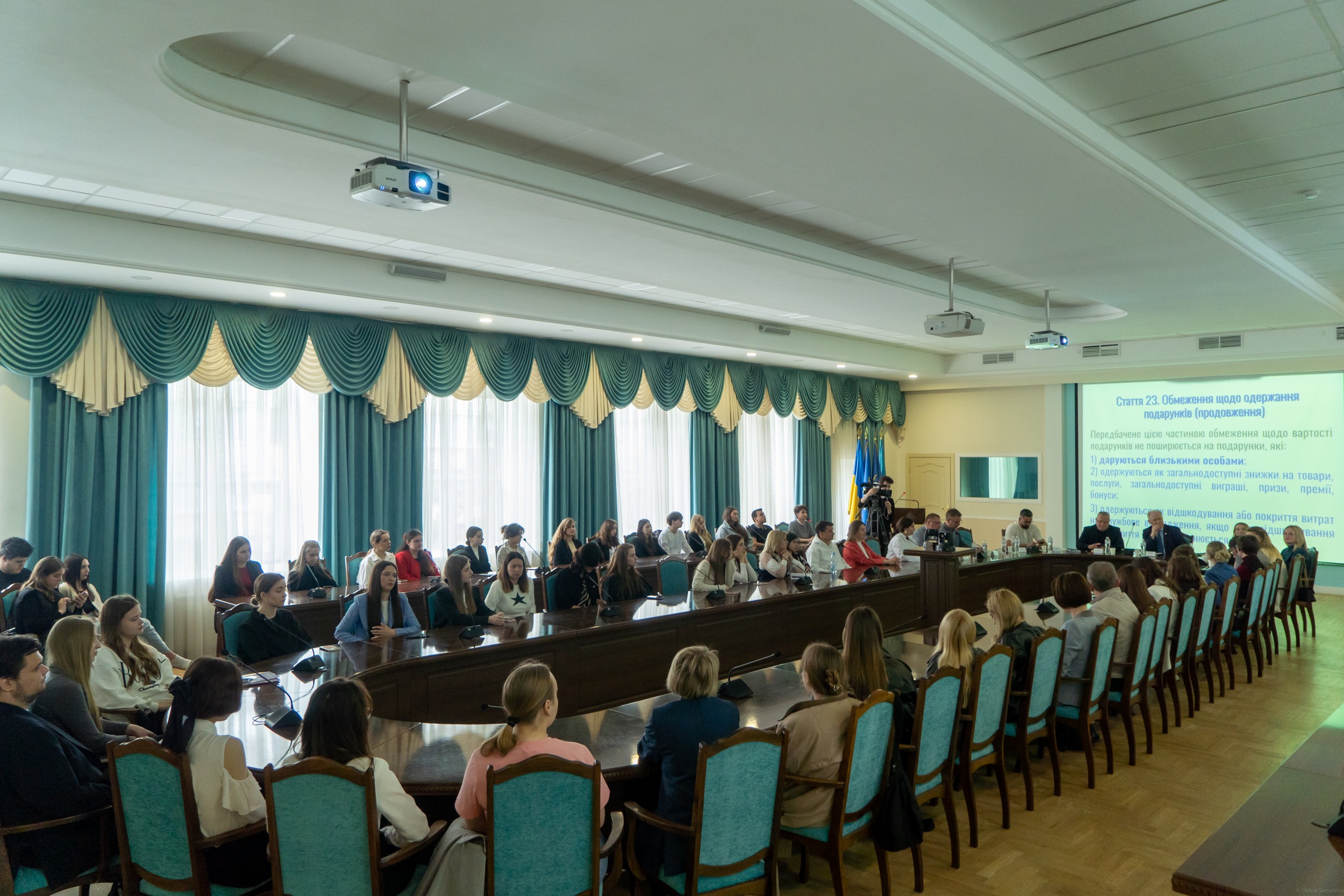 Під час заходу фахівці Департаменту провели лекції для студентів, присвячені основам антикорупційного законодавства, етичній поведінці у публічному секторі, методам виявлення та врегулювання конфлікту інтересів, а також відповідальності за порушення антикорупційного законодавства. Завершила програму інтерактивна сесія запитань і відповідей.