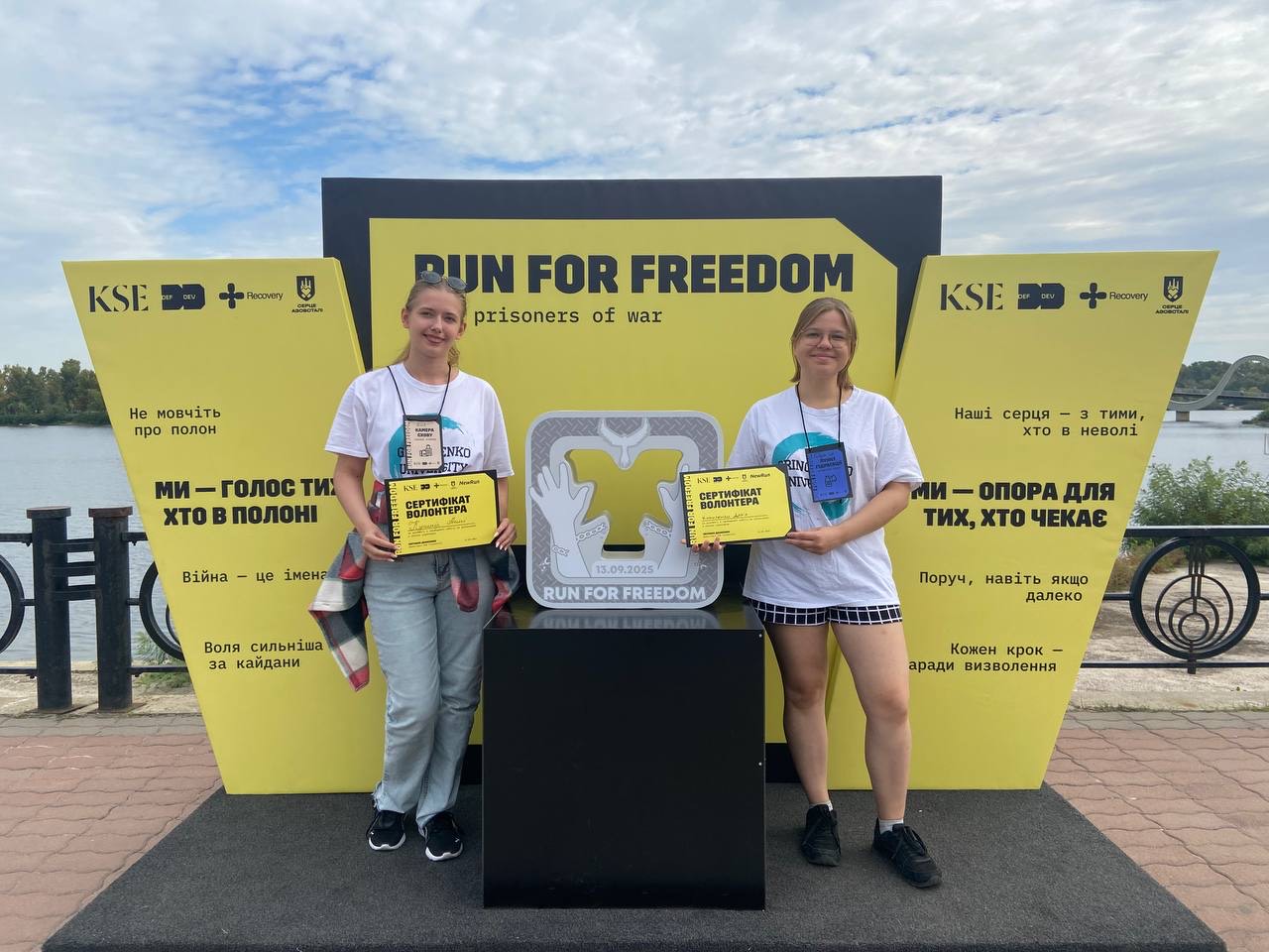 13 вересня 2025 року студентки 2 курсу ОП «Суспільні комунікації» Кириленко Дар'я та Кушнір Анна долучились до «RunForFreedom» - щорічного забігу-адвокації звільнення українців з полону: військових та цивільних, чоловіків, жінок і дітей.