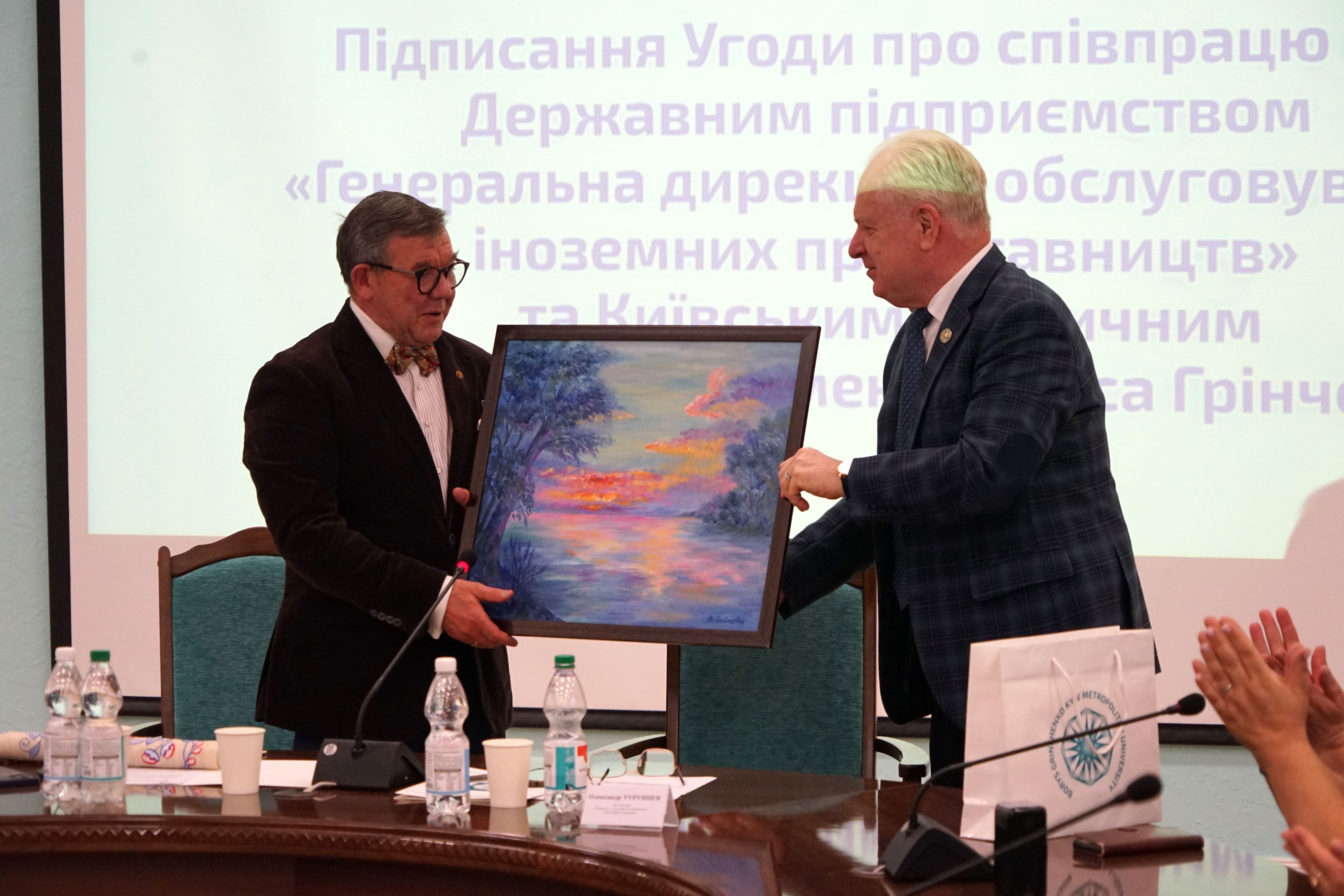 24 жовтня 2025 року на базі Київського столичного університету імені Бориса Грінченка відбулося урочисте підписання угоди про співпрацю між Університетом та Державним підприємством «Генеральна дирекція з обслуговування іноземних представництв».