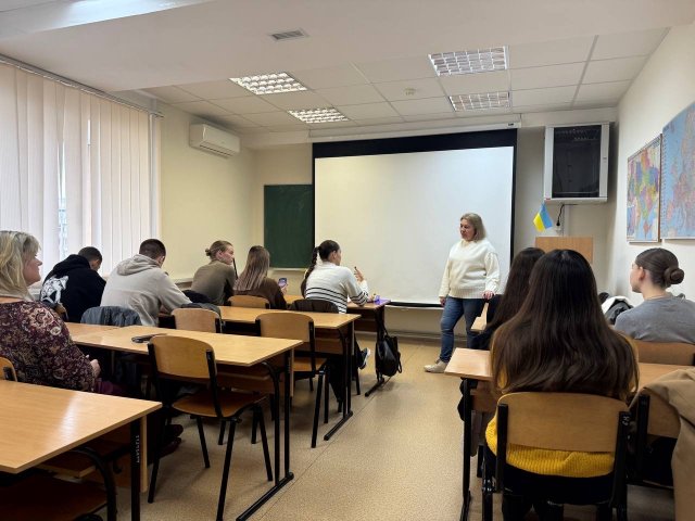 09 жовтня 2025 року на Факультеті права та міжнародних відносин відбулась зустріч із начальником відділу з питань діяльності органів виконавчої влади та правового забезпечення адміністративної процедури Управління конституційного та адміністративного законодавства Департаменту публічного права Міністерства юстиції України Оленою Мавріною.