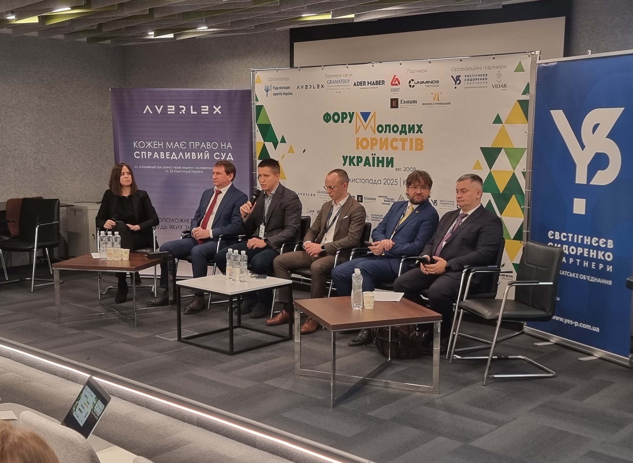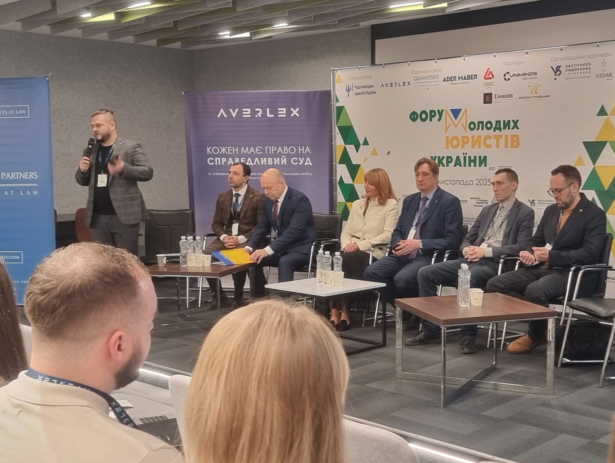 У вступному слові Євген КОТОРОБАЙ – голова ради молодих юристів України привітав усіх учасників заходу із його початком і представив гостей та спікерів заявлених у програмі Форуму молодих юристів україни-2025. Михайло СМОКОВИЧ – голова Касаційного адміністративного суду у складі Верховного Суду, Олена ФЕРЕНС – заступниця Міністра юстиції України, Фархад ФАРХАДОВ – заступник Міністра у справах ветеранів України, Андрій БУТЕНКО – голова Національного агентства із забезпечення якості вищої освіти, звертаючись до усіх присутніх звернули свою увагу на тому, що відповідний захід став традицією у юриспруденції, є своєрідним стимулом до самовдосконалення та професійного зростання. Відмітили про його всеукраїнський характер, що дає змогу майбутнім юристам та провідним фахівцям у сфері правничої діяльності поділитися досвідом, передати його майбутньому поколінню правників. Зокрема Андрій БУТЕНКО, звертаючись до учасників заходу закцентував увагу на юридичному клінічному рухові співзасновниками якого були Координаційна рада молодих юристів при Міністерстві юстиції України та ЮК «Фенікс» КУП НАН України, яку очолював протягом 2008-2011 років Андрій ЧЕРНЕГА. Сьогодні презентує успішну діяльність ЮК «Астреї» ФПМВ Університету Грінченка (2014-2025 рр.).