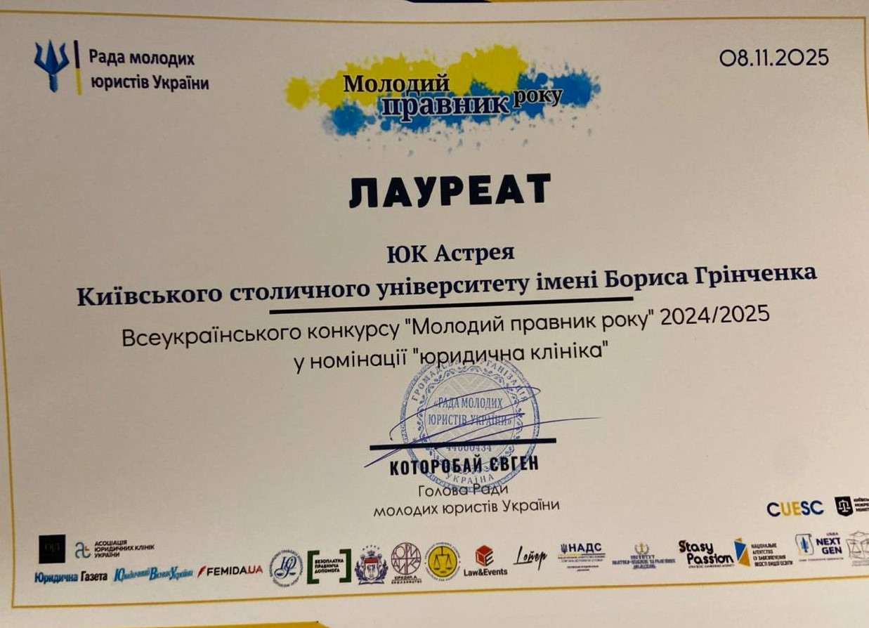 Колектив ЮК «Астрея» Факультету права та міжнародних відносин Університету Грінченка взяв участь у щорічному Всеукраїнському Форумі молодих юристів України, організованому і започаткованому ще в далекому 2009 році, Радою молодих юристів України. Організаторами заходу виступили: адвокатські об’єднання і компанії «Євстігнєєв, Сидоренко і партнери», «GRAMATSKIY», ADER HABER, AVERLEX, UNIMINDS, LEGALACT, Etorum, Вознюк & Туровський, VIDAR за підтримки Міністерства юстиції України, Міністерства у справах ветеранів України, Верховного Суду, Центральної виборчої комісії, Національного агентства із забезпечення якості вищої освіти, Інституту політико-правових та релігійних досліджень.