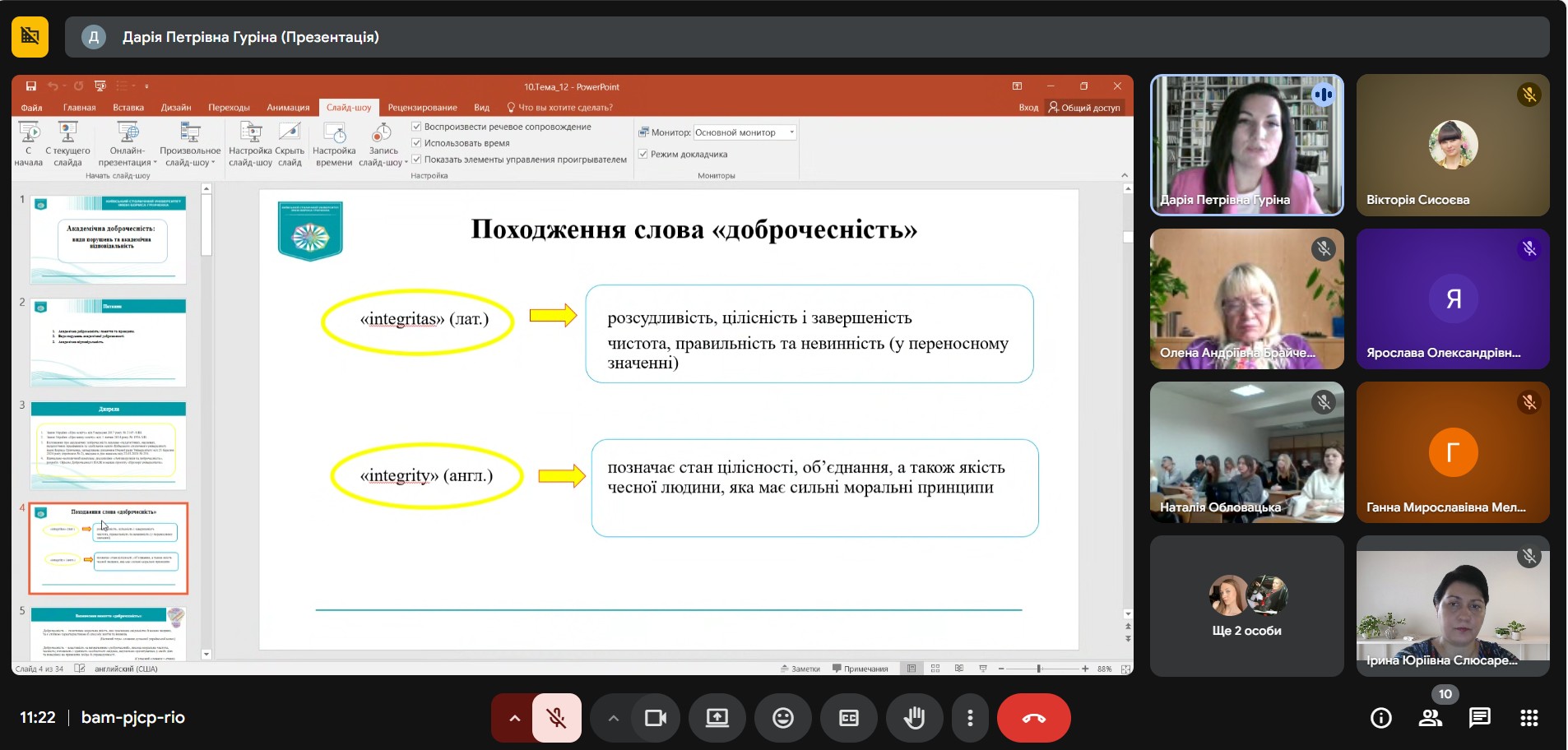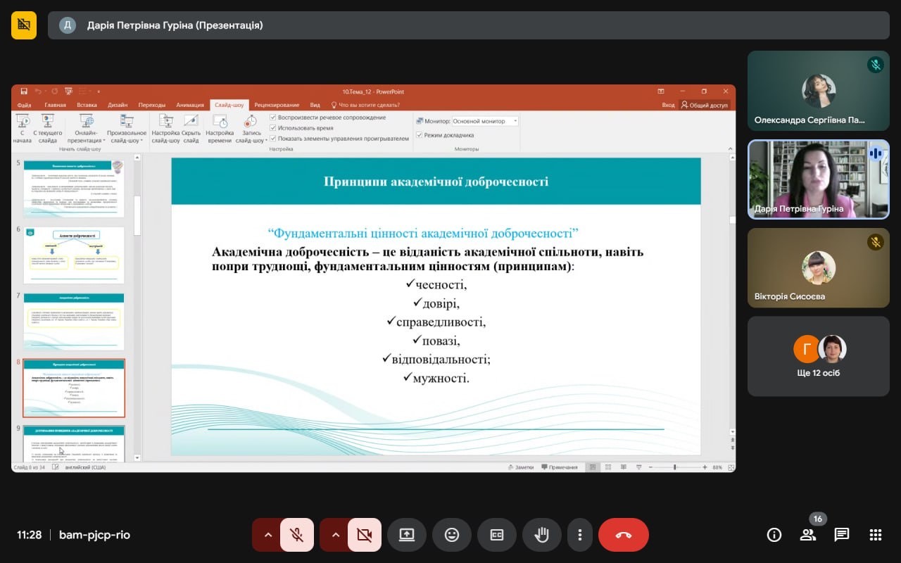 21 листопада 2025 року на Факультеті права та міжнародних відносин відбувся вебінар на тему «Академічна доброчесність: види порушень та академічна відповідальність», який провела Дарія ГУРІНА, кандидат юридичних наук, доцент кафедри публічного права Факультету права та міжнародних відносин. До заходу долучилися науково-педагогічні працівники кафедр міжнародних відносин, публічного права та іноземних мов, а також здобувачі освітніх програм «Право» першого (бакалаврського) рівня та «Міжнародні відносини та дипломатія», «Міжнародне право» другого (магістерського) рівня Факультету права та міжнародних відносин.