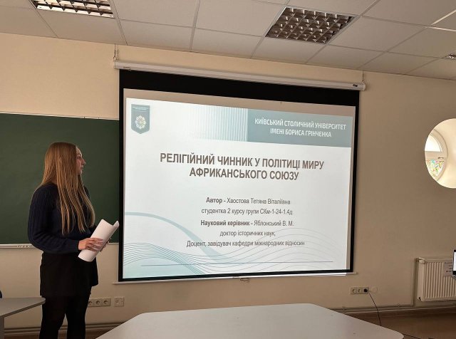 Тематика робіт здобувачів ОП «Суспільні комунікації» охоплювала питання євроінтеграційного вектору державної інформаційної політики України (Валерія Іващенко), ролі медіа у російсько-українській війні (Дмитро Мазур), впливу «мозкових центрів» України на прийняття державних зовнішньополітичних рішень (Єлизавета Шкарпіта) та релігійного чинника у політиці миру Африканського Союзу (Тетяна Хвостова). Робота Тетяни Хвостової (науковий керівник завідувач кафедри міжнародних відносин, д.і.н., доцент В.М. Яблонський) була відзначна екзаменаційною комісією як найкраща.