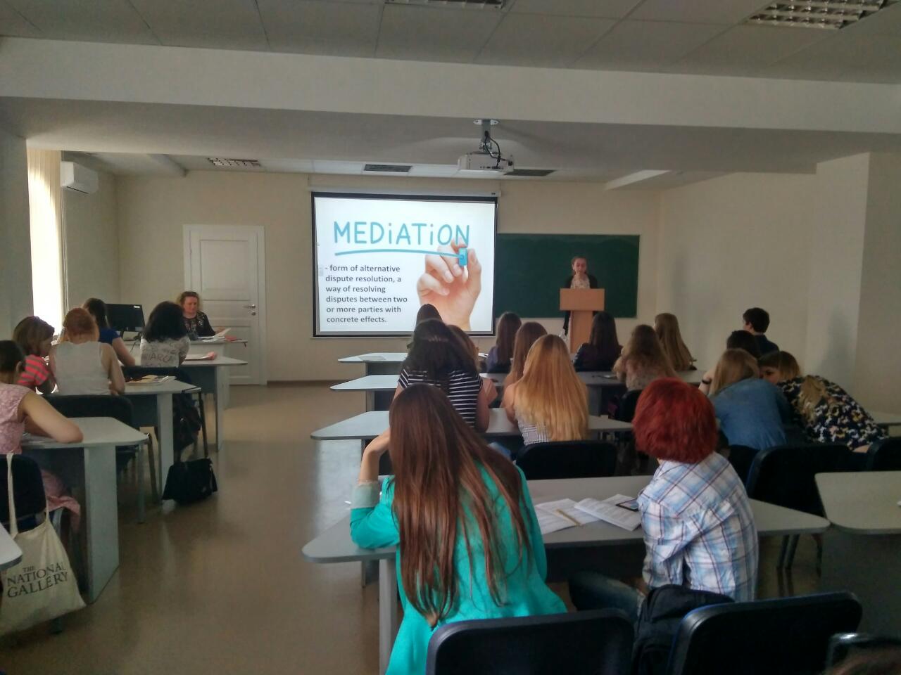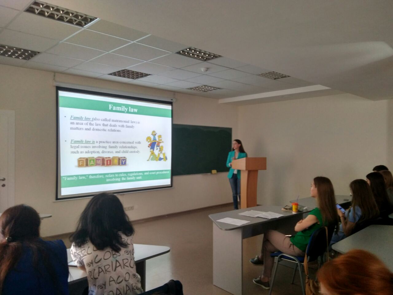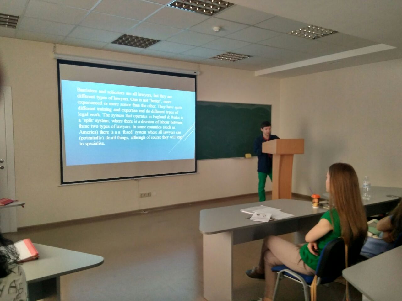 Студенти обговорювали наступні теми: ЮРИДИЧНІ ПРОФЕСІЇ В УКРАЇНІ, ВІДМІННІСТЬ МІЖ СОЛІСИТЕРАМИ ТА БАРІСТЕРАМИ, ПРАВОПОРУШЕННЯ НЕПОВНОЛІТНІМИ, НАЦІОНАЛЬНА ПОЛІЦІЯ УКРАЇНИ, ПЕРЕГОВОРНИЙ ПРОЦЕС, ПОСЕРЕДНИЦТВО, ПРАВО ІНТЕЛЕКТУАЛЬНОЇ ВЛАСНОСТІ, СІМЕЙНЕ ПРАВО, ЗАРЕЄСТРОВАНИЙ ШЛЮБ ТА ГРОМАДЯНСЬКИЙ ШЛЮБ та НОТАРІАТ.