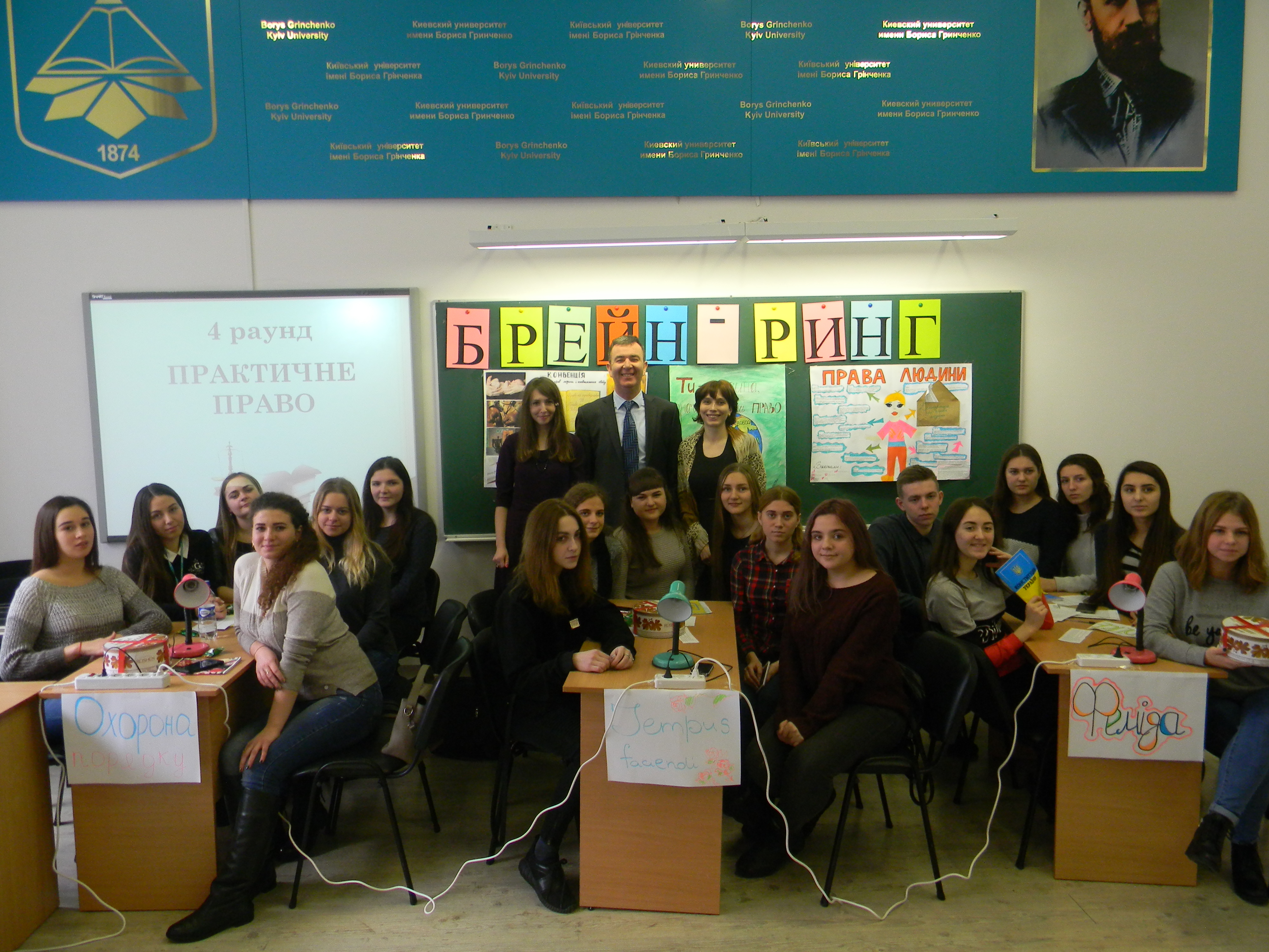 04 грудня 2017 року в рамках традиційної щорічної Грінченківської декади та Тижня права кафедра публічного та приватного права Факультету права та міжнародних відносин провела змагання у пізнавально-інтелектуальній грі Брейн-ринг на тему: «Знай свої права» між студентами спеціальності «Право».