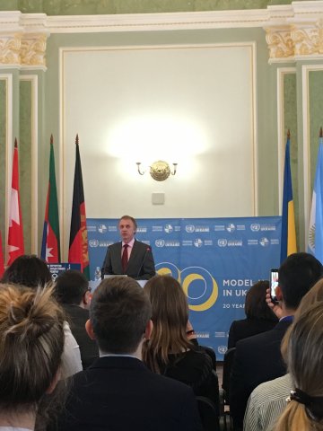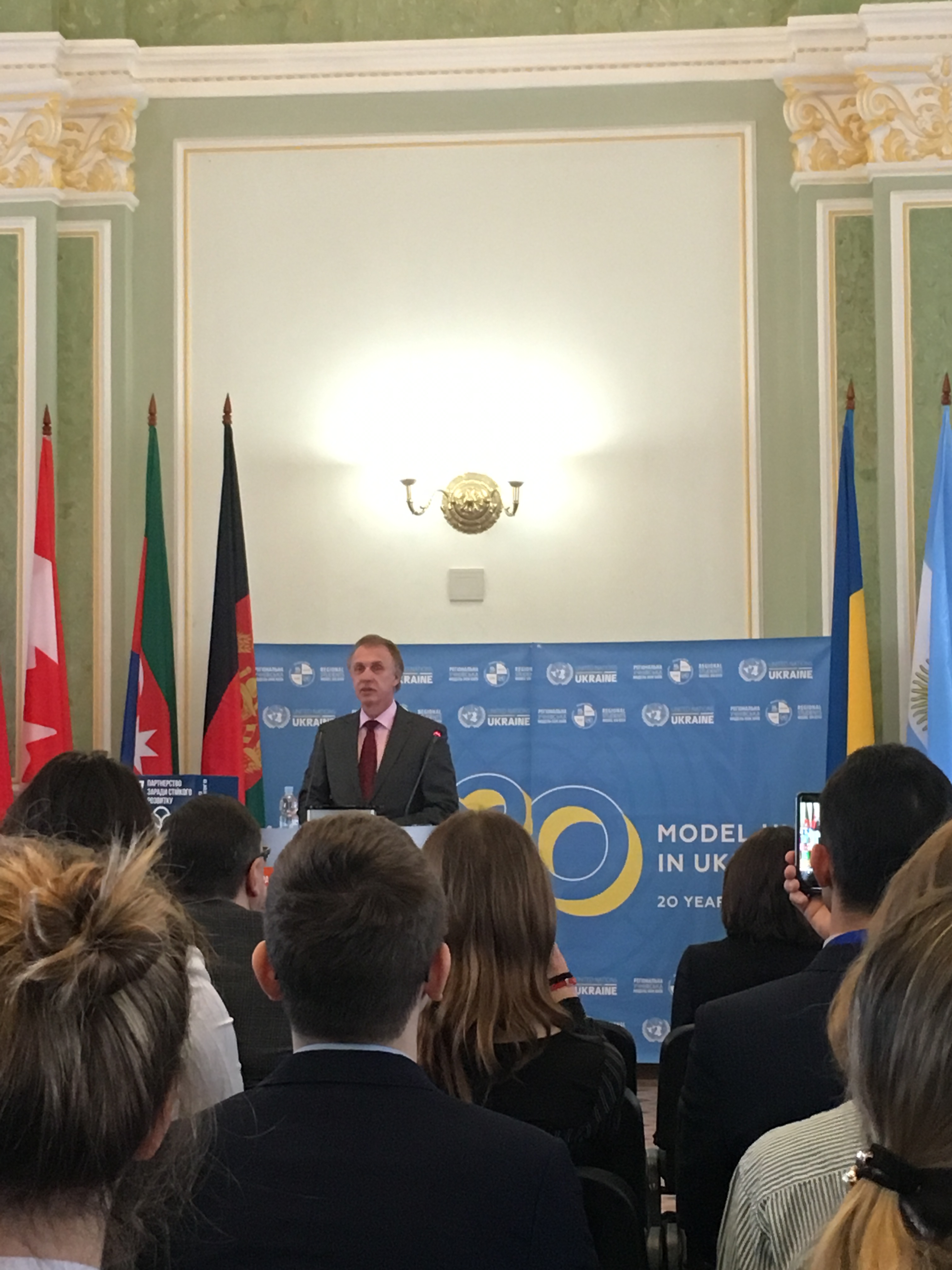 З вітальним словом до учасників звернулися: Дмитро Ткач - Надзвичайний і Повноважний посол України в Угорщині (2006–2010), Володимир Огризко – український дипломат, міністр закордонних справ України (2007 - 2009); Ніл Вокер - Координатор Системи ООН в Україні, який зазначив: «‘Енергія, запал та нестандарне мислення молоді сприятимуть позитивним перетворенням як України так і всього світу. Завдяки таким навчальним форматам як Модель ООН молоді люди мають змогу познайомитися з роботою Організації Об’єднаних Націй, дізнатись про права людини та Цілі сталого розвитку і подумати про свою роль у вирішенні глобальних проблем».