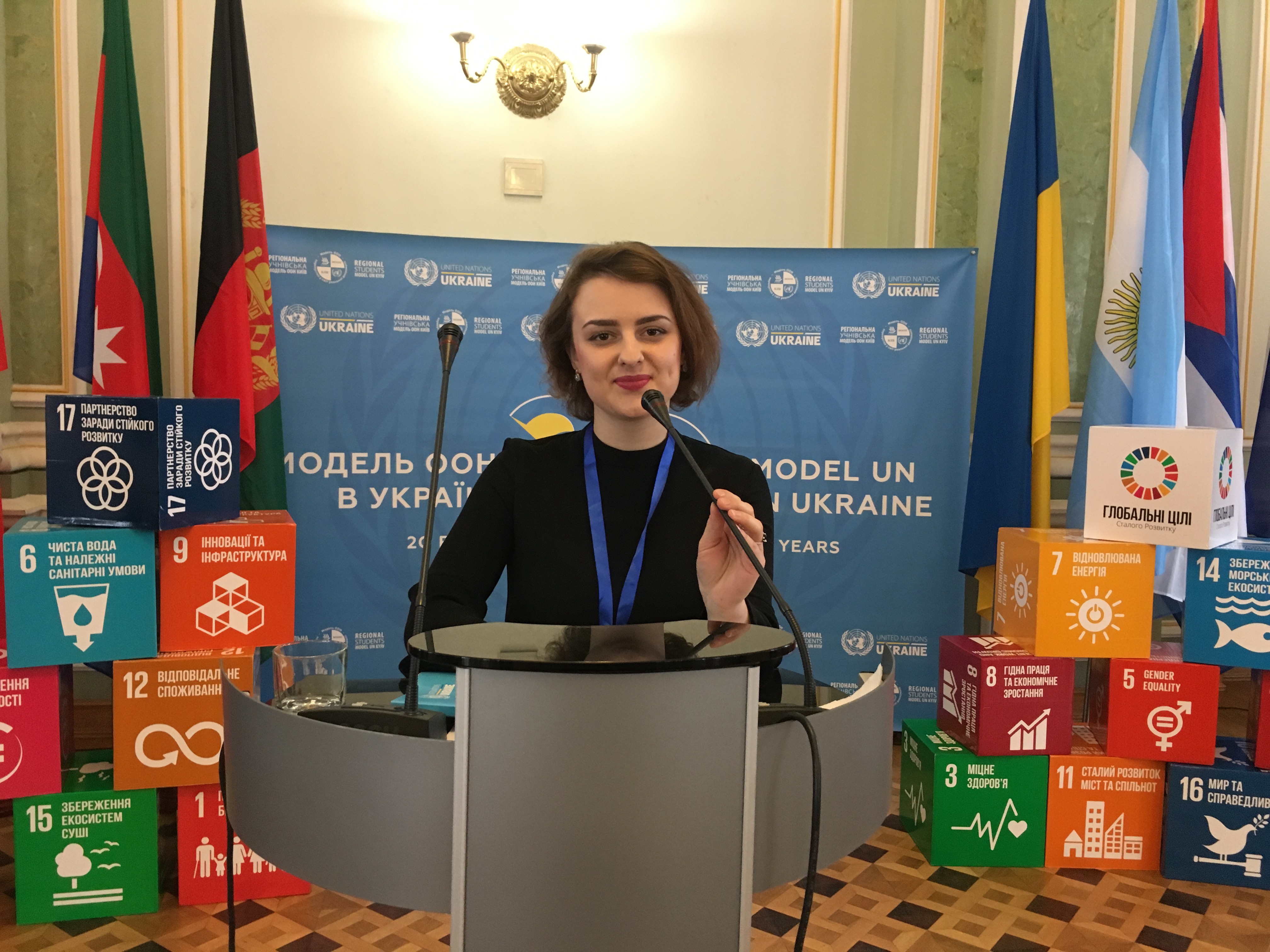 23 березня Голова департаменту з розвитку міжнародних пректів Студентської Ради Факультету, студентка ІІ курсу спеціальності «Країнознавство» Добридень Альона стала учасницею Всеукраїнської конференції «20 років Моделі ООН в Україні», яка проходила у Дипломатичній академії України імені Геннадія Удовенка при Міністерстві закордонних справ.
