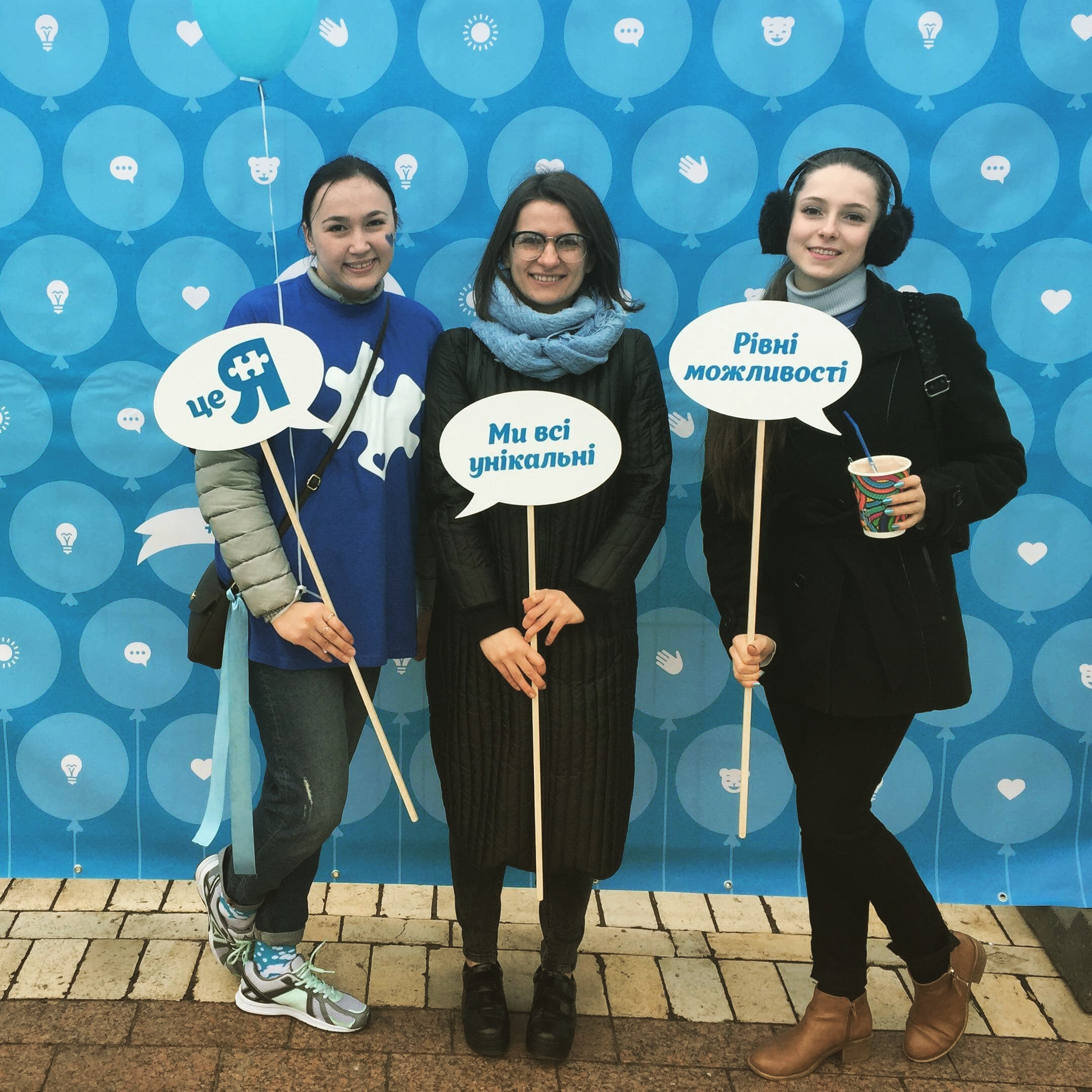 Наприкінці акції організатори та учасники вишикувались у блакитну стрічку, що є символом аутизму, випустили повітряні кульки у блакитне небо, щоб показати що діти з аутизмом – це частина суспільства.