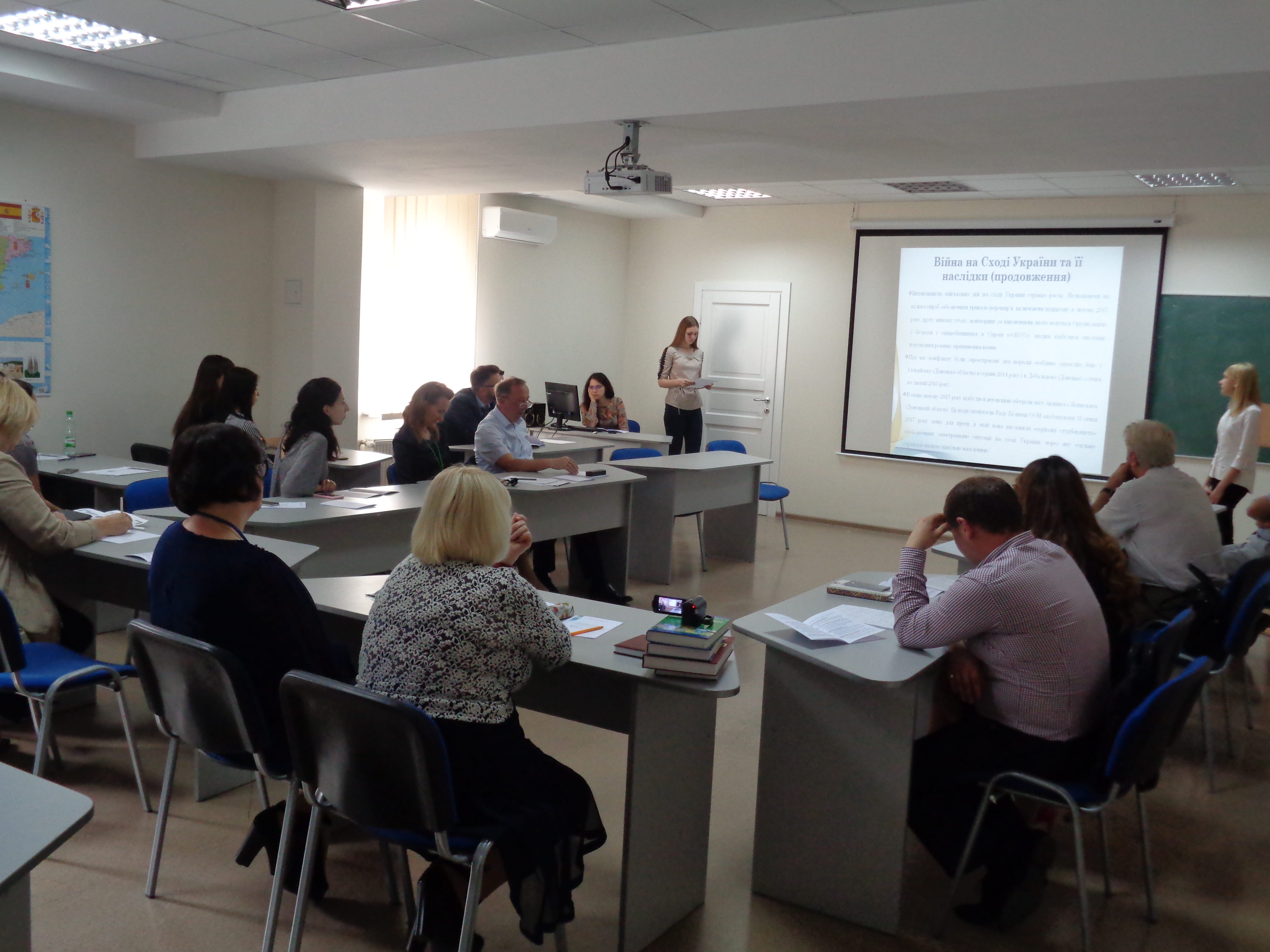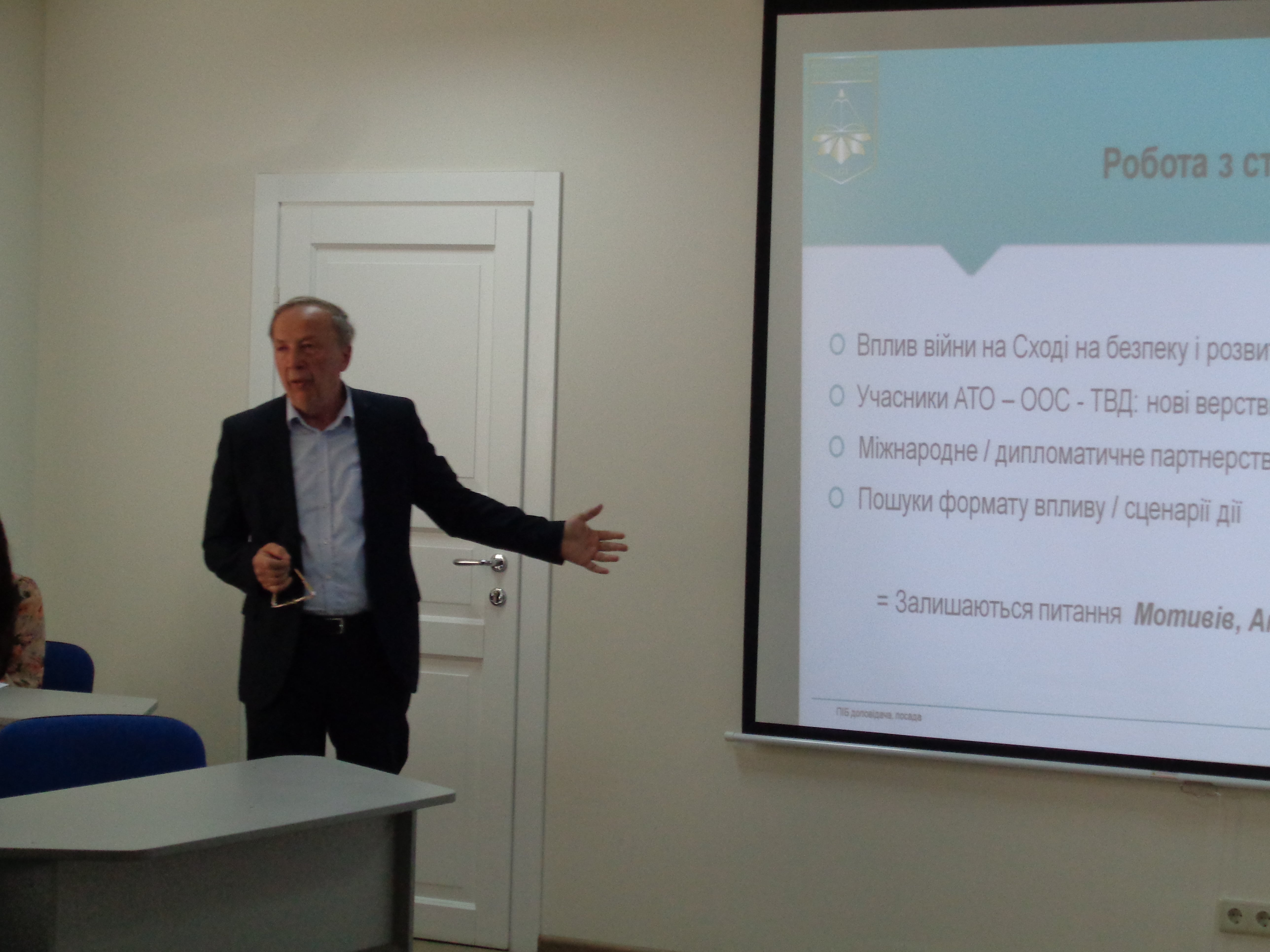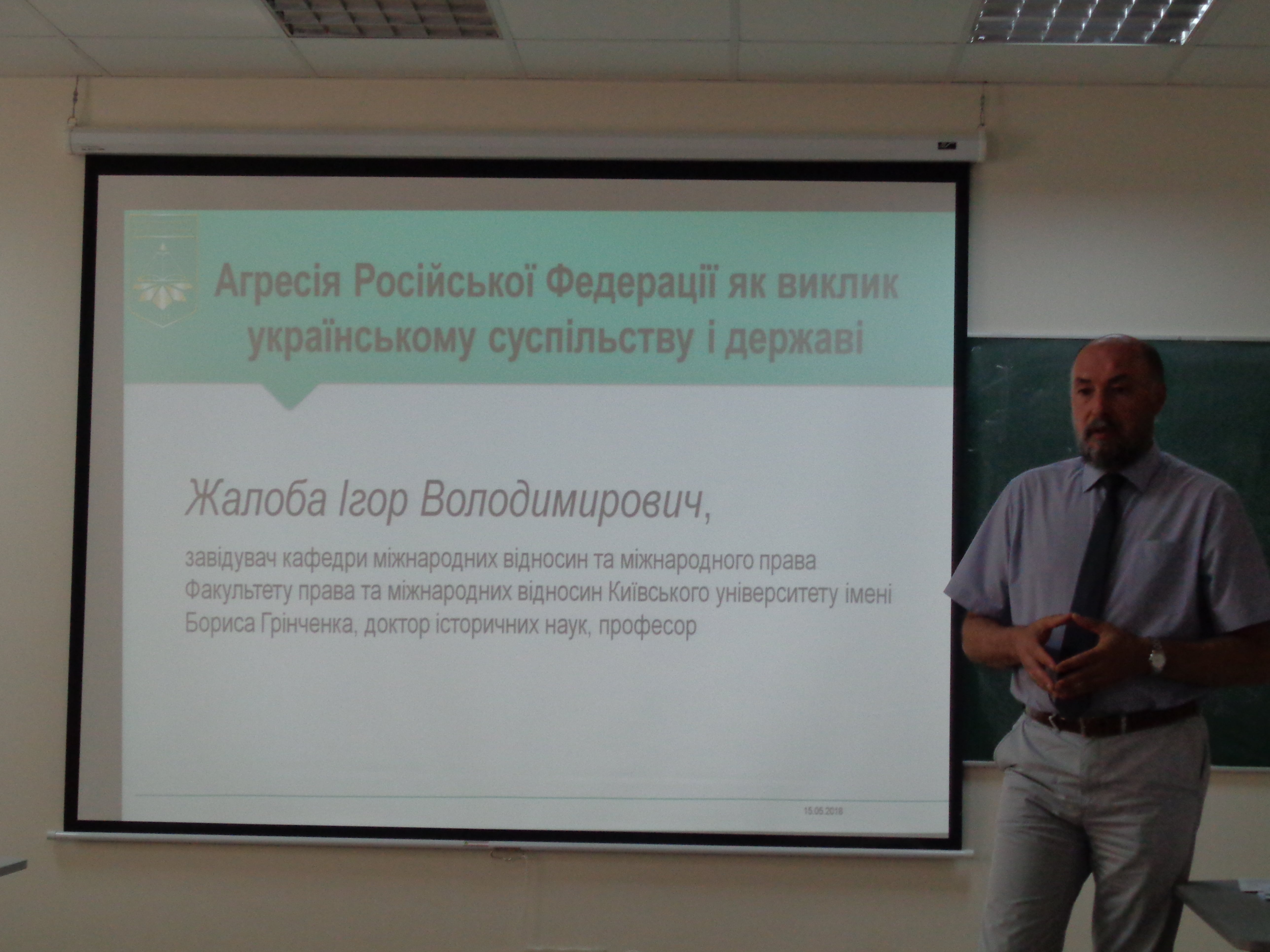 З доповідями виступили завідувач кафедри міжнародних відносин та міжнародного права, доктор історичних наук, професор І.В. Жалоба; професор кафедри міжнародних відносин та міжнародного права, доктор історичних наук професор О.Г. Цвєтков; доцент кафедри міжнародних відносин та міжнародного права, кандидат юридичних наук, доцент Л.О. Тимченко. У заході взяли участь також доценти кафедри О.А. Брайчевська, Г.М. Мельник, І.Ю. Слюсаренко, І.В. Братко, а також старші викладачі кафедри О.В. Пістракевич, С.А. Бут, М.М. Лісовська.