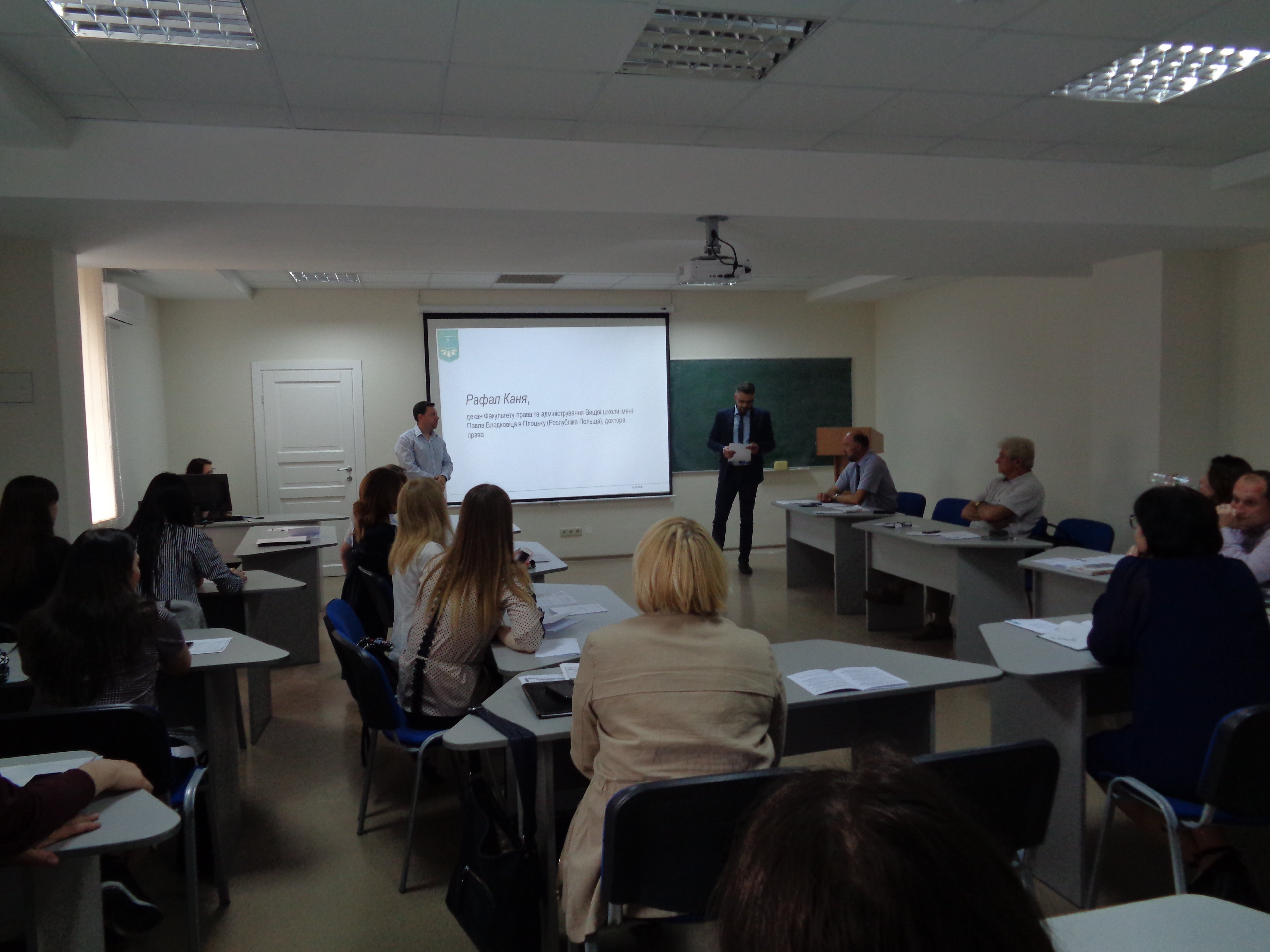 15 травня 2018 року кафедра міжнародних відносин та міжнародного права організувала та провела круглий стіл «Агресія Російської Федерації проти України: передумови, сутність, проблема вирішення». У роботі круглого столу взяв участь декан Факультету права та адміністрування Вищої школи імені Павла Влодковіца в Плоцьку (Республіка Польща), доктор права Рафал Каня.