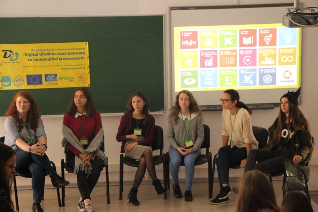 Окрім виступів фахівців діджитал–сфери, учасники Форуму мали змогу висловити свої ідеї та подискутувати з іншими студентами під час групової дискусії у форматі «Fishbowl» на тему: «Цифрові технології допомагають чи перешкоджають досягненню «Цілей сталого розвитку 2016–2030» ? Яким чином? Як допомогти чи запобігти даному ефекту?», яку модерувала Слюсаренко Ірина Юріївна, доцент кафедри міжнародних відносин та міжнародного права. В процесі групової гри у форматі «World Cafe», учасники обговорили інші важливі теми, що стосуються цифрових технологій в сучасному світі, серед яких: інформаційні та кібер війни, цифрові навички та цифровий інтелект, цифровий захист журналістів та дрон–журналістика, інформаційне право та інформаційне суспільство, вплив цифрових технологій в процесі глобалізації.